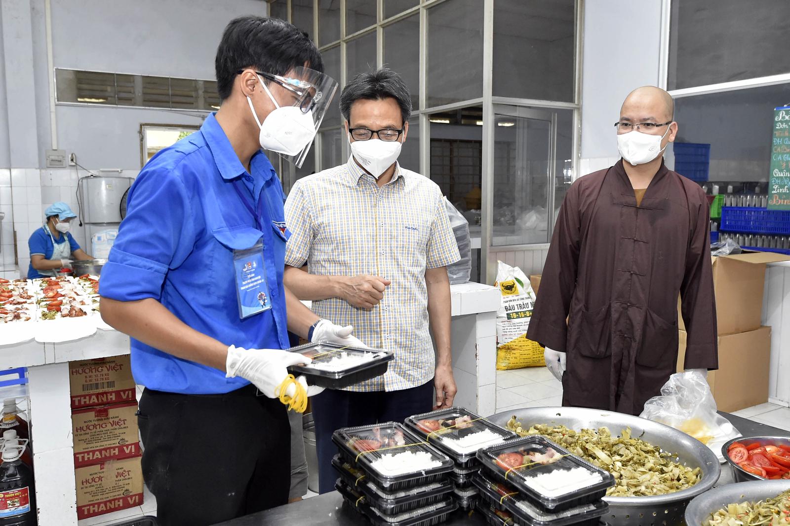 Phó Thủ tướng Vũ Đức Đam thăm bếp ăn tình thương tại chùa Nam Thiên Nhất Trụ. Ảnh: CTV