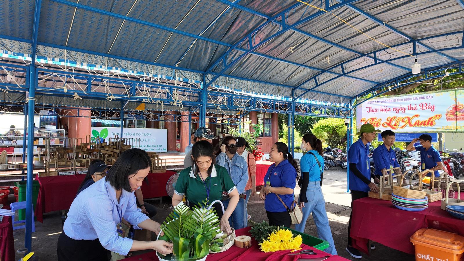 Người dân và du khách hoàn toàn có thể lựa chọn các mâm lễ với hoa quả, trái cây và các vật dụng thân thiện với môi trường để dâng lễ và thắp hương, nhang tại các điểm di tích. Ảnh: A.X