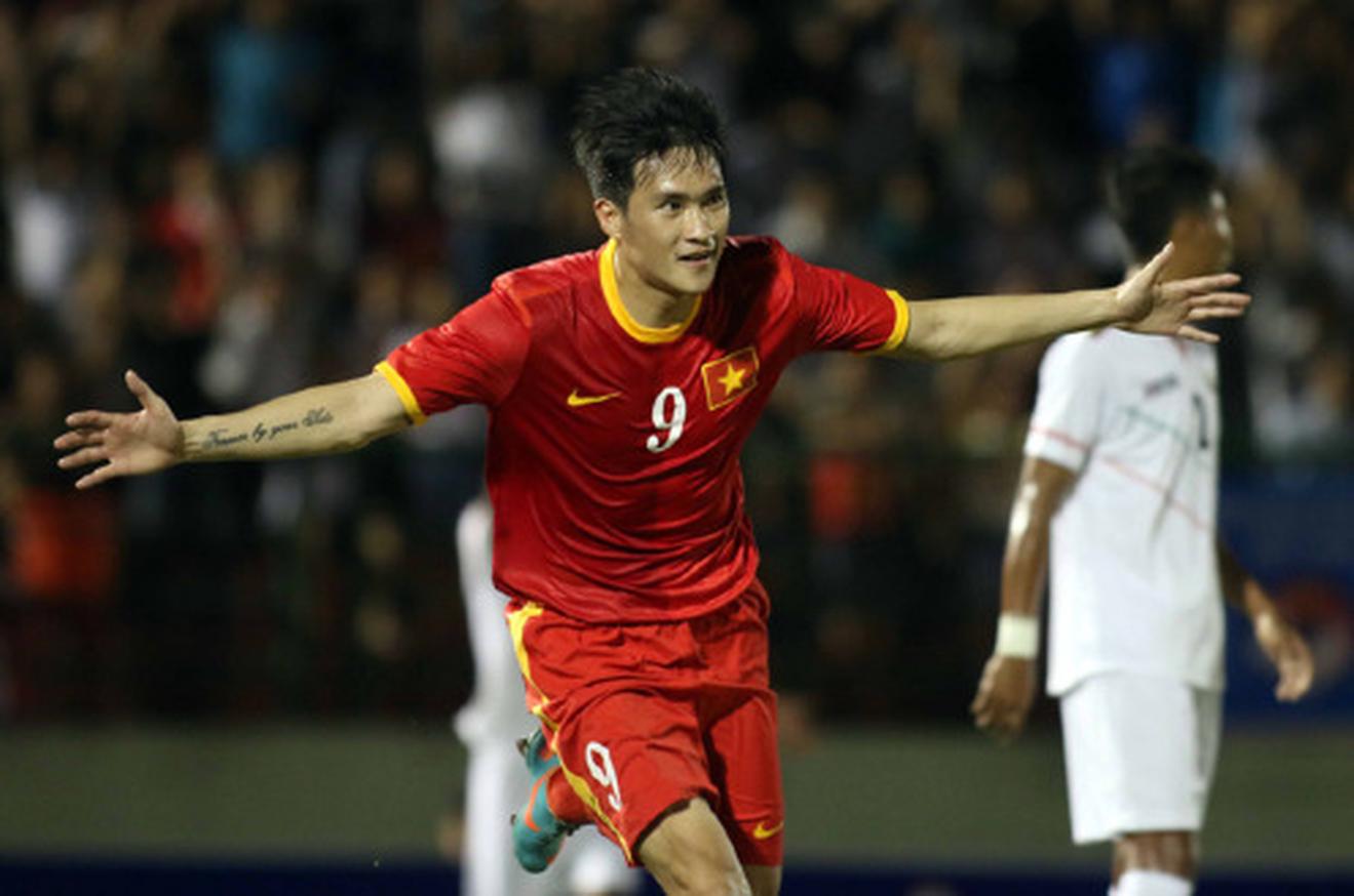 Tiền đạo Lê Công Vinh ăn mừng bàn thắng trong màu áo đội tuyển VN. Ảnh: N.K