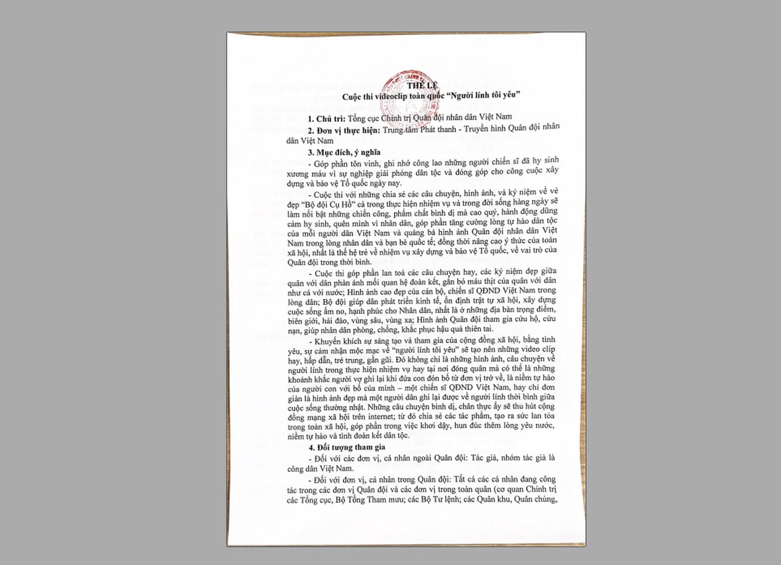 Cuộc thi Video clip toàn quốc “Người lính tôi yêu” do Tổng cục Chính trị Quân đội nhân dân Việt Nam chủ trì, Trung tâm Phát thanh - Truyền hình Quân đội nhân dân Việt Nam là đơn vị thực hiện.