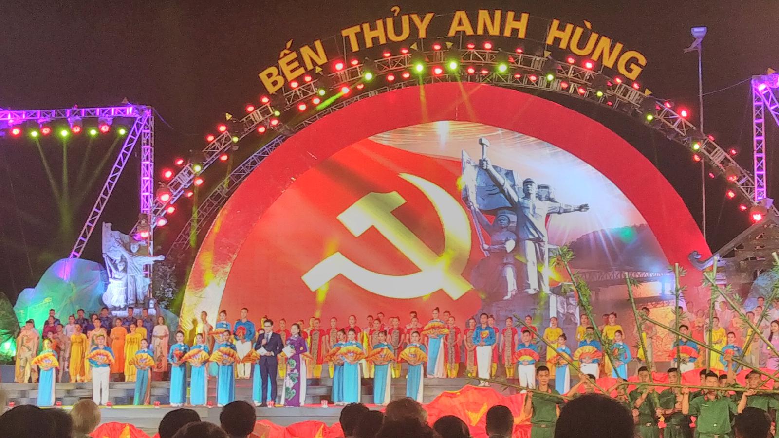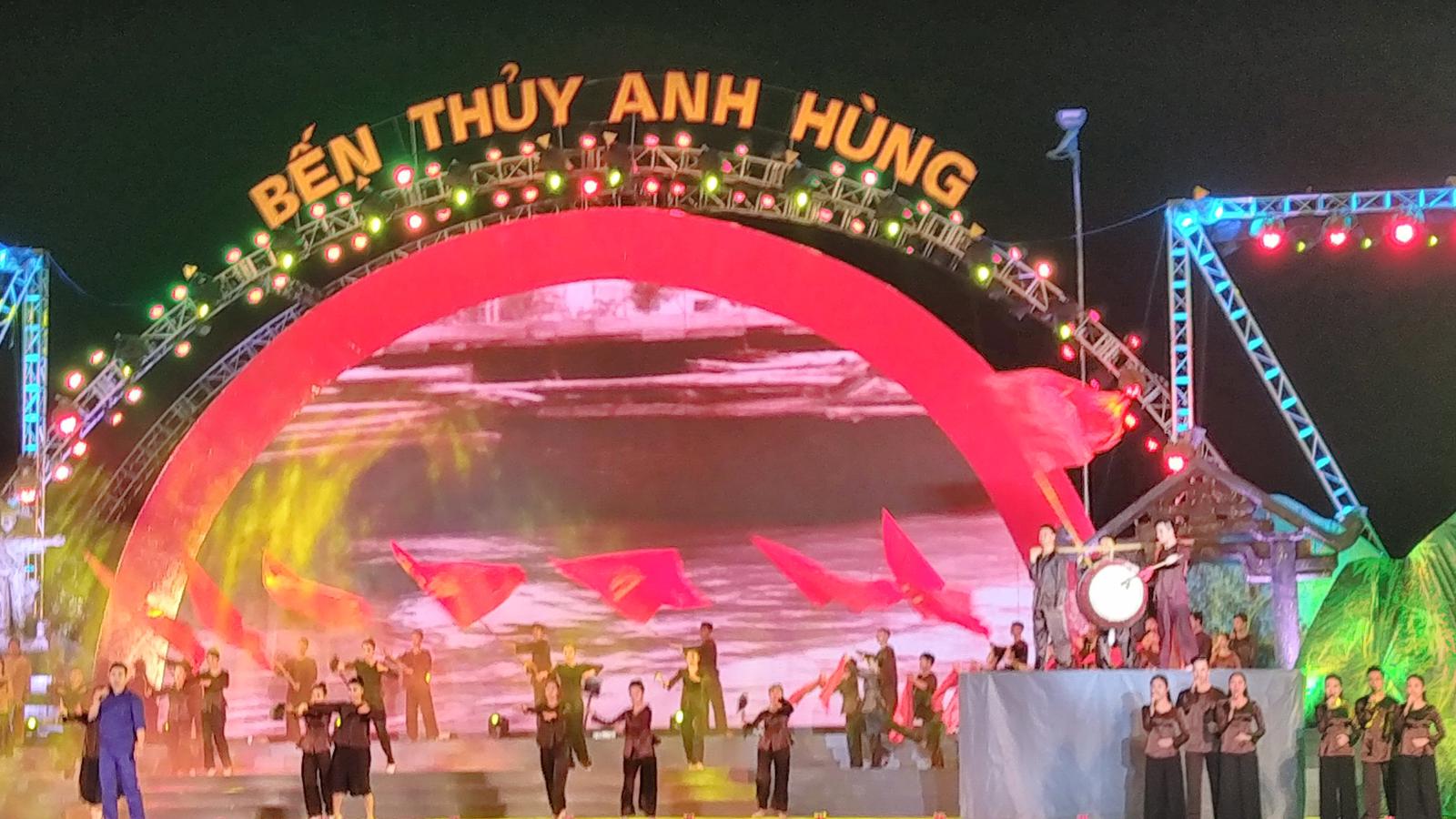 Chương trình nghệ thuật “Bến Thủy anh hùng” gồm bốn chương: “Nơi hội tụ khí thiêng sông núi”, “Đứng đầu dậy trước”, “Tọa độ anh hùng”, “Bến Thủy hôm nay” với các tiết mục múa sử thi, các ca khúc, như “Trung đô thuở ấy còn đây”, “Núi Hồng sông Lam”, “Bến Thủy khúc tráng ca”, “Gửi người chiến sĩ trên phà”, “Cô dân quân làng đỏ”, “Chào em cô gái Lam Hồng”, “Giữ vững biển trời Xô Viết Nghệ An”, “Nghệ Tĩnh mình đây”, “Thương về xứ Nghệ”, “Mai anh về Hà Tĩnh”…