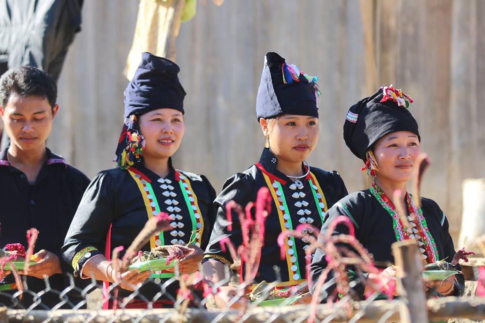 Nghi lễ cúng Tết hoa của đồng bào Cống. Ảnh: Tuyết Anh