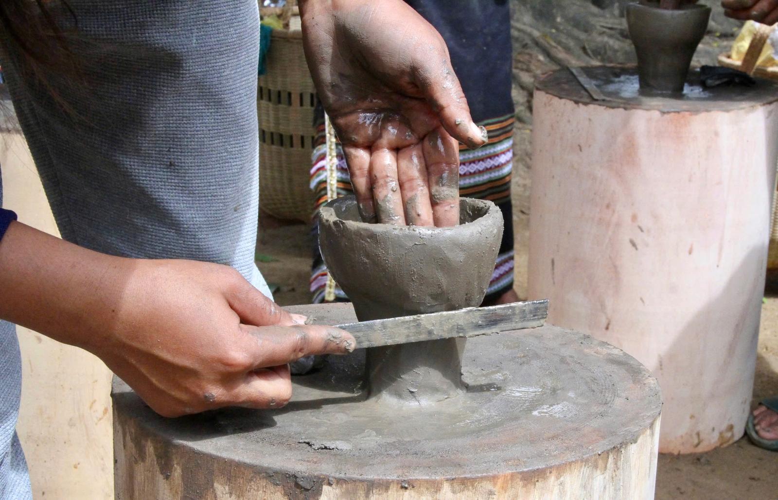 Điểm đặc biệt của gốm M'Nông nằm ở kỹ thuật chế tác hoàn toàn thủ công. Đất sét được lấy từ bờ sông, chân núi Chư Yang Sin, có màu nâu vàng đặc trưng. Sau khi loại bỏ tạp chất, đất được “ủ” bằng lá chuối, nong nia và được tưới nước hằng ngày để giữ độ dẻo tự nhiên.