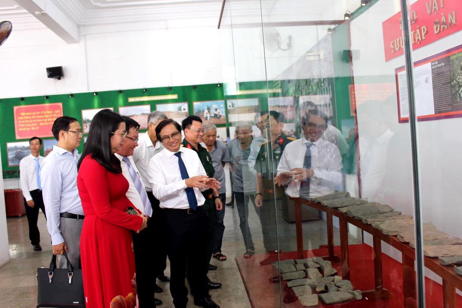 Phó Chủ tịch UBND tỉnh Đồng Nai Nguyễn Sơn Hùng trao đổi với khách mời về bộ sưu tập đàn đá Bình Đa. Ảnh: C.C