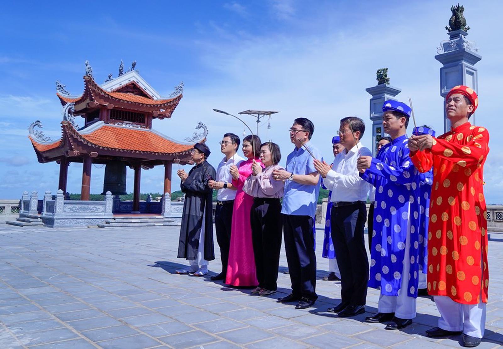 Phó Chủ tịch UBND thành phố Lê Khắc Nam cùng lãnh đạo thành phố, quận dâng hương tại đền Nam Hải Thần Vương trên đảo Dấu. Ảnh: KT