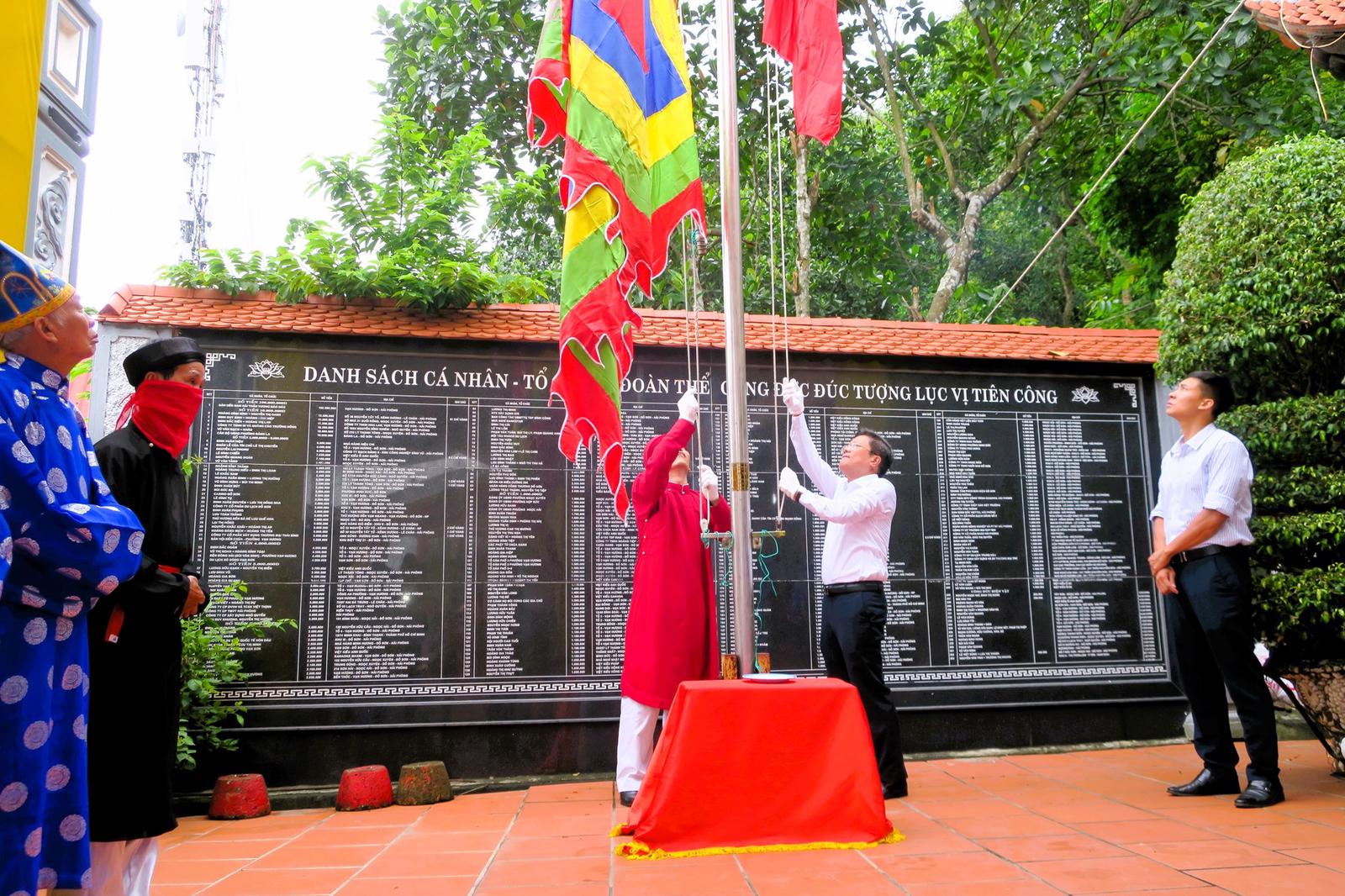 Lãnh đạo quận Đồ Sơn thực hiện nghi thức thượng cờ tại Đền Nghè. Ảnh: KT
