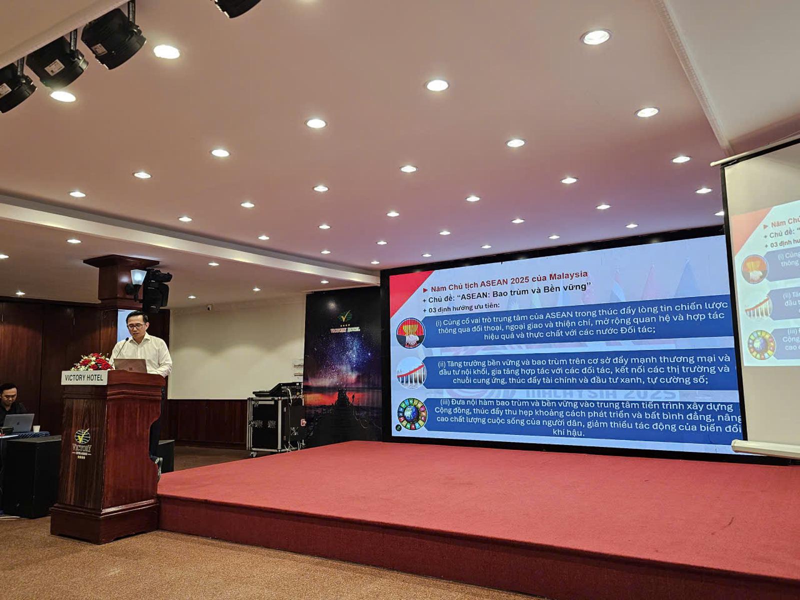 Trong phần tuyên truyền, nâng cao nhận thức, các đại biểu được nghe chia sẻ thông tin cập nhật từ Ban Thư ký ASEAN, Bộ Ngoại giao và Bộ Công Thương về tình hình hợp tác ASEAN trên cả 3 trụ cột chính trị - an ninh, kinh tế và văn hóa – xã hội.