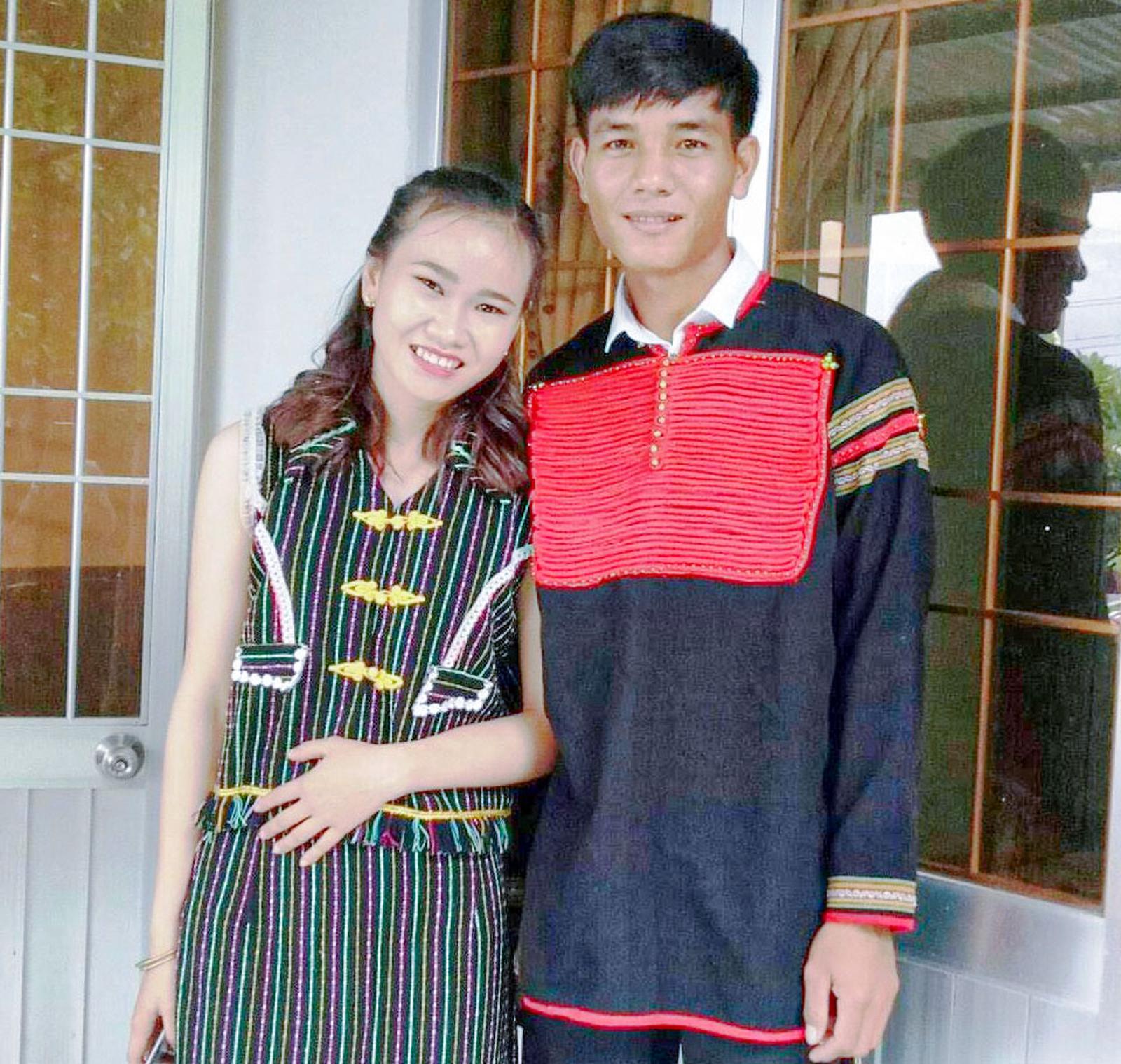 Chị H'Ngọc Nhi Niê ở thôn Buôn Đung hạnh phúc bên chàng trai Y Khen. Ảnh: Khoa Lê