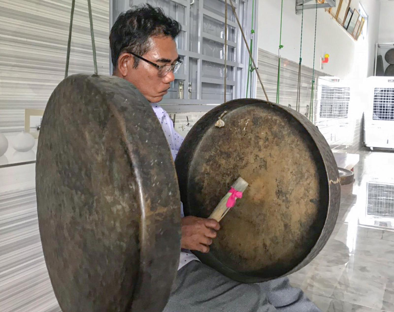 Nhạc cụ cồng chiêng góp phần tăng thêm không khí vui tươi của ngày lễ cưới hỏi của đồng bào dân tộc Ê đê. Ảnh: Khoa Lê