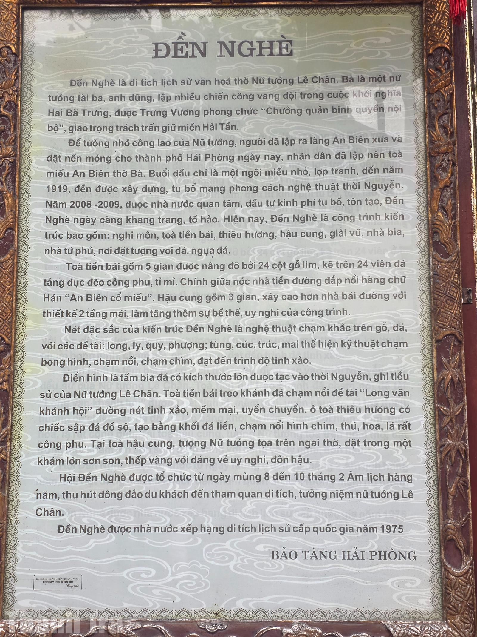 Đền Nghè là nơi tưởng nhớ công lao to lớn của Nữ tướng Lê Chân, người đã lập ra làng An Biên xưa và đặt nền móng cho TP Hải Phòng ngày nay. Không chỉ mang ý nghĩa lịch sử thiêng liêng, di tích này còn gây ấn tượng mạnh mẽ bởi vẻ đẹp kiến trúc cổ kính mang phong cách nghệ thuật thời Nguyễn.