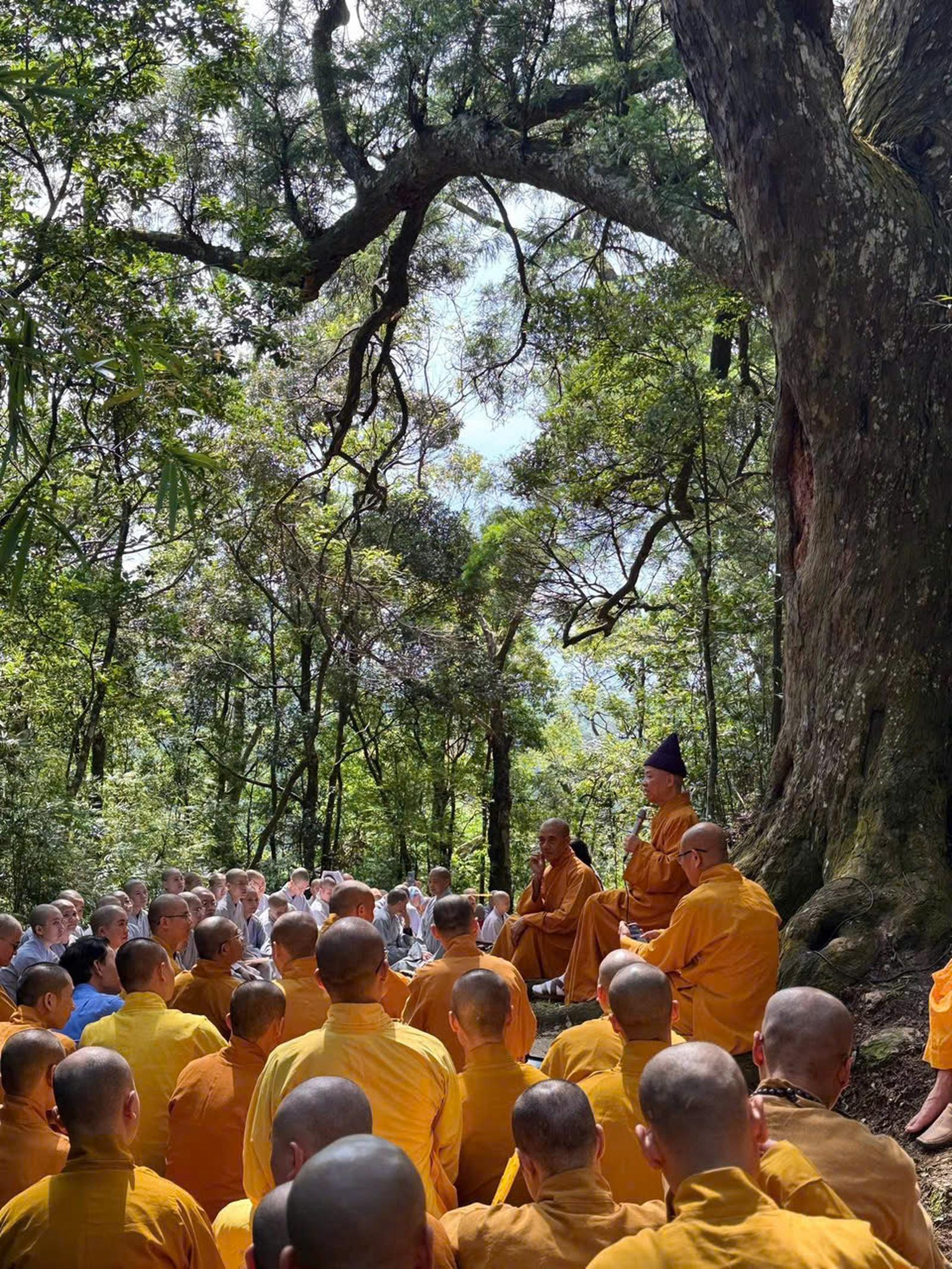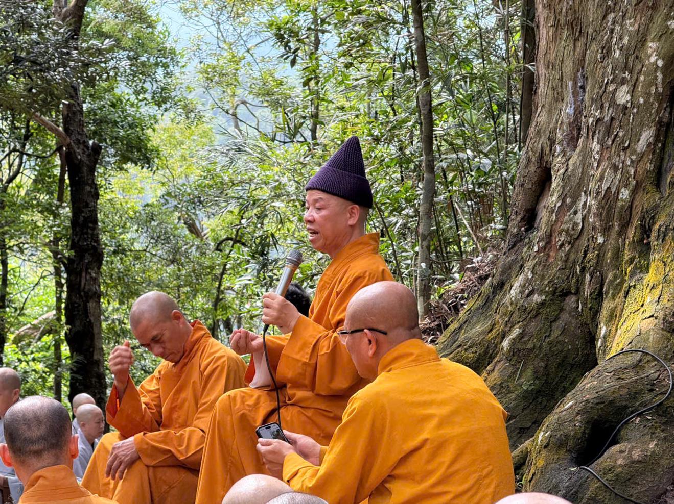 Tại đây, các tăng ni sinh đã được nghe Hoà thượng Thích Thanh Quyết, Viện trưởng Học viện, Trưởng ban Trị sự Phật giáo tỉnh Quảng Ninh chia sẻ những giá trị phi vật thể của tư tưởng Phật hoàng Trần Nhân Tông và tình yêu thiên nhiên mà Phật hoàng đã để lại cho hậu thế với những loài cây trường tồn với thời gian.