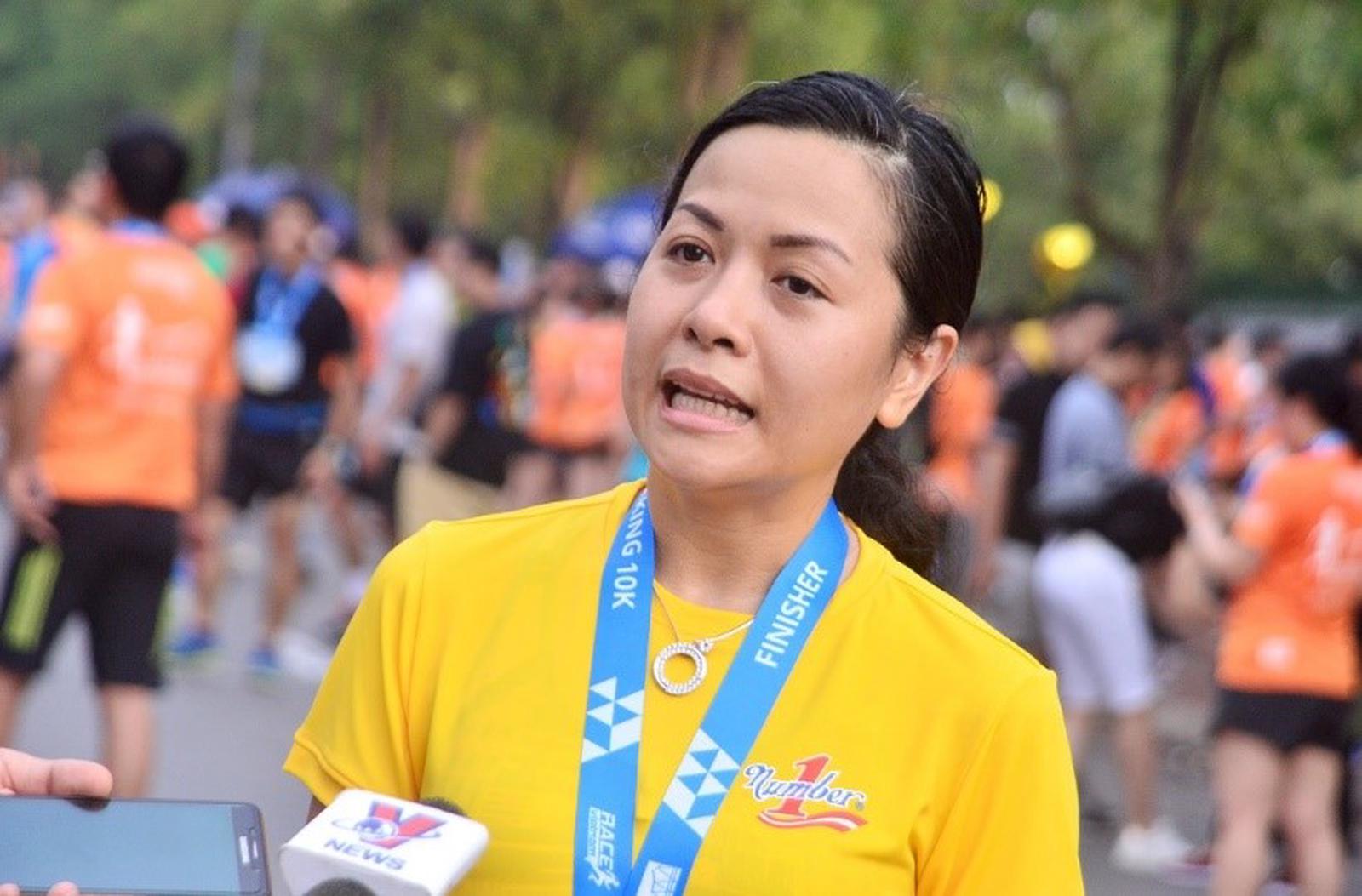 Doanh nhân Trần Uyên Phương trên đường đua Long Biên Marathon 2019.
