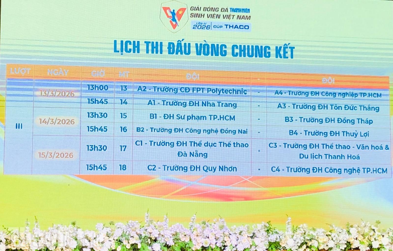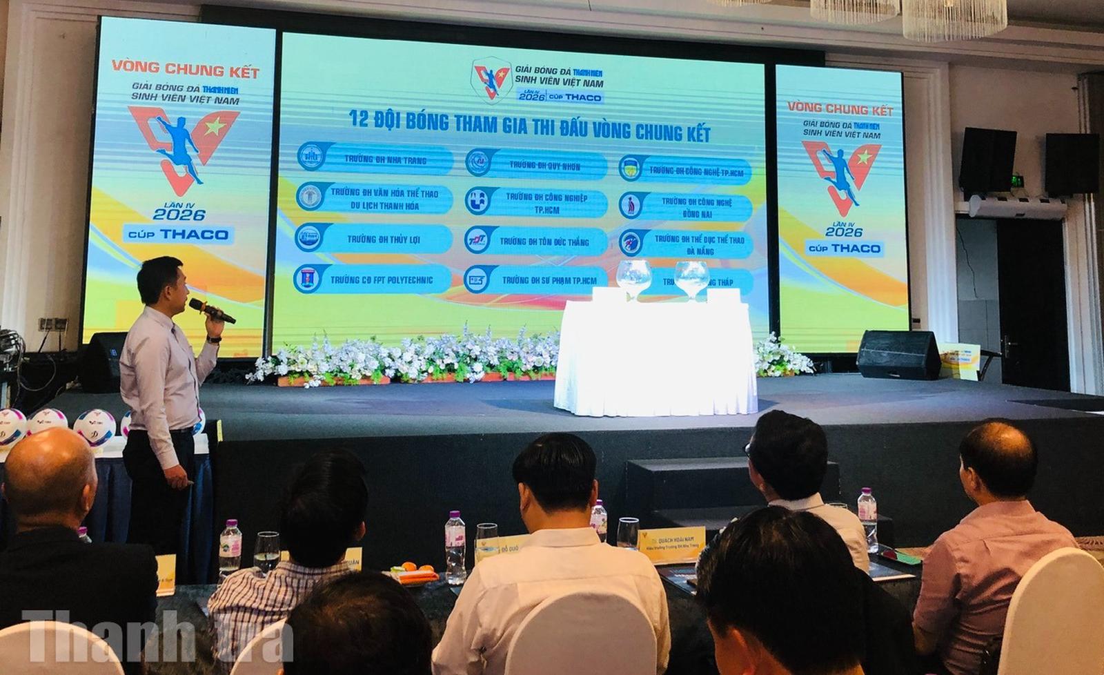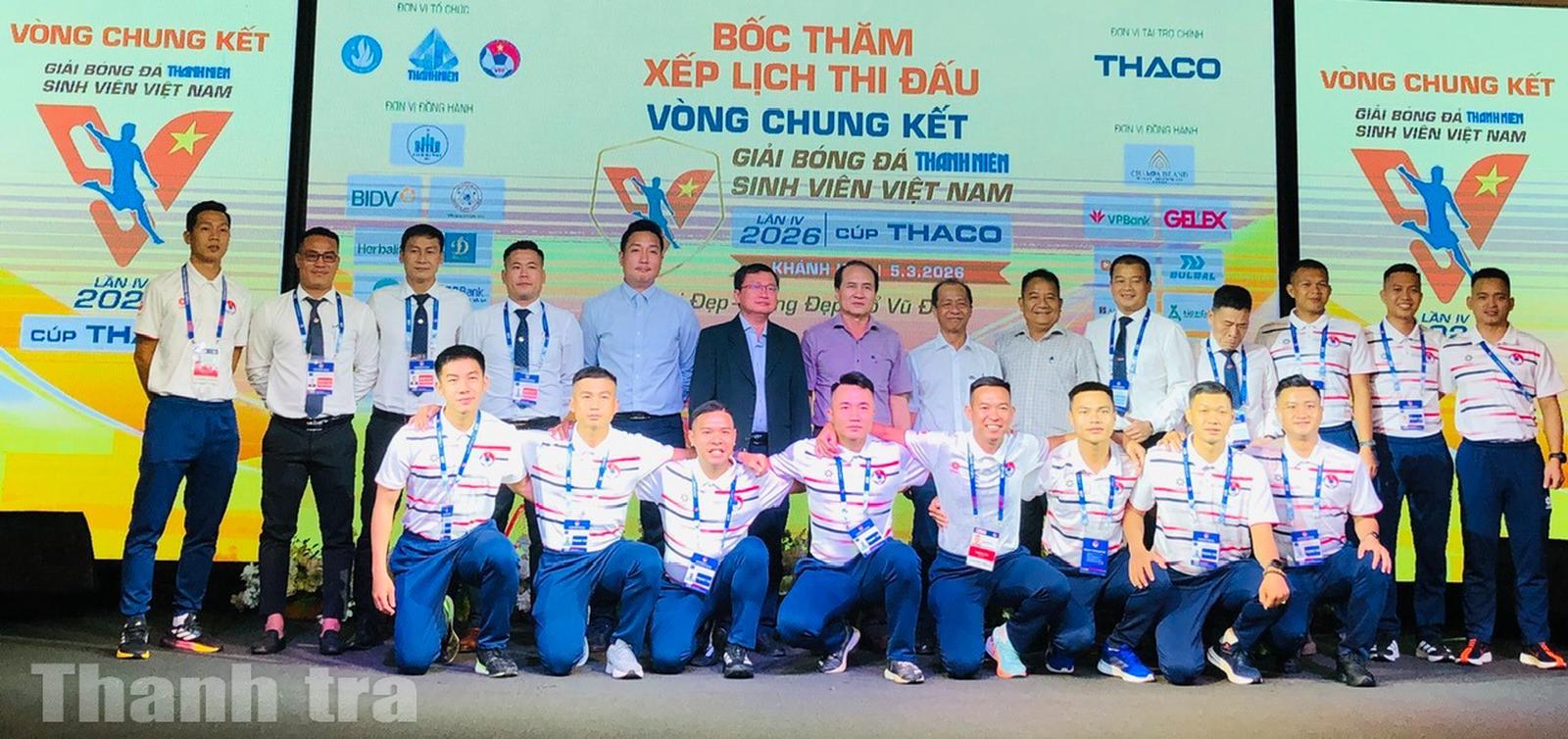 Chiều 5/3, tại Champa Island Resort (Nha Trang, Khánh Hòa), lễ bốc thăm xếp lịch thi đấu vòng chung kết Giải bóng đá Thanh Niên sinh viên Việt Nam lần IV – 2026, Cúp THACO đã chính thức diễn ra, xác định cục diện ba bảng đấu và lịch trình tranh tài của 12 đội mạnh nhất.