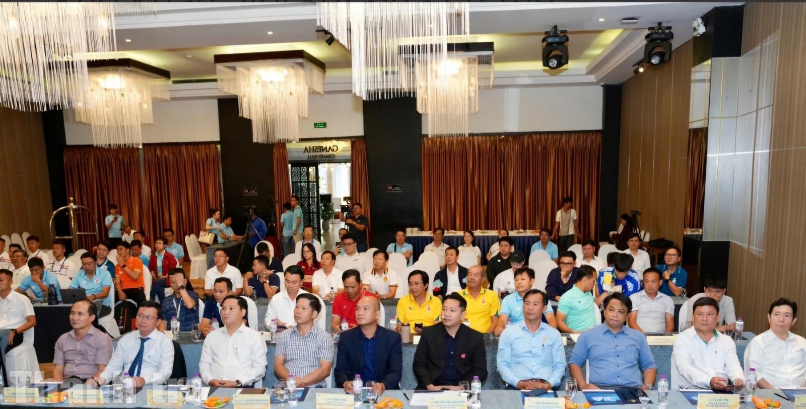 Lãnh đạo các Sở ngành, các Trường đại học, đơn vị đồng hành, tài trợ chứng kiến Lễ bốc thăm chia bảng. Ảnh Minh Nghĩa