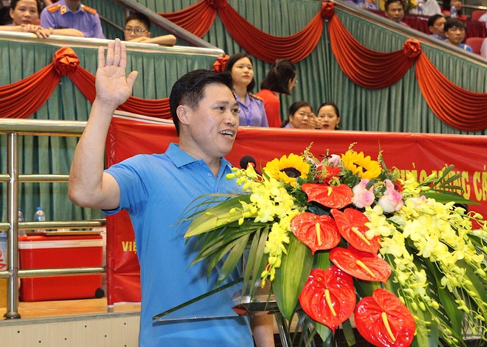 Ông Nguyễn Đức Bằng, KSV cao cấp, Trưởng phòng 4, Vụ 5 VKSND tối cao thay mặt 573 VĐV lên tuyên thệ.