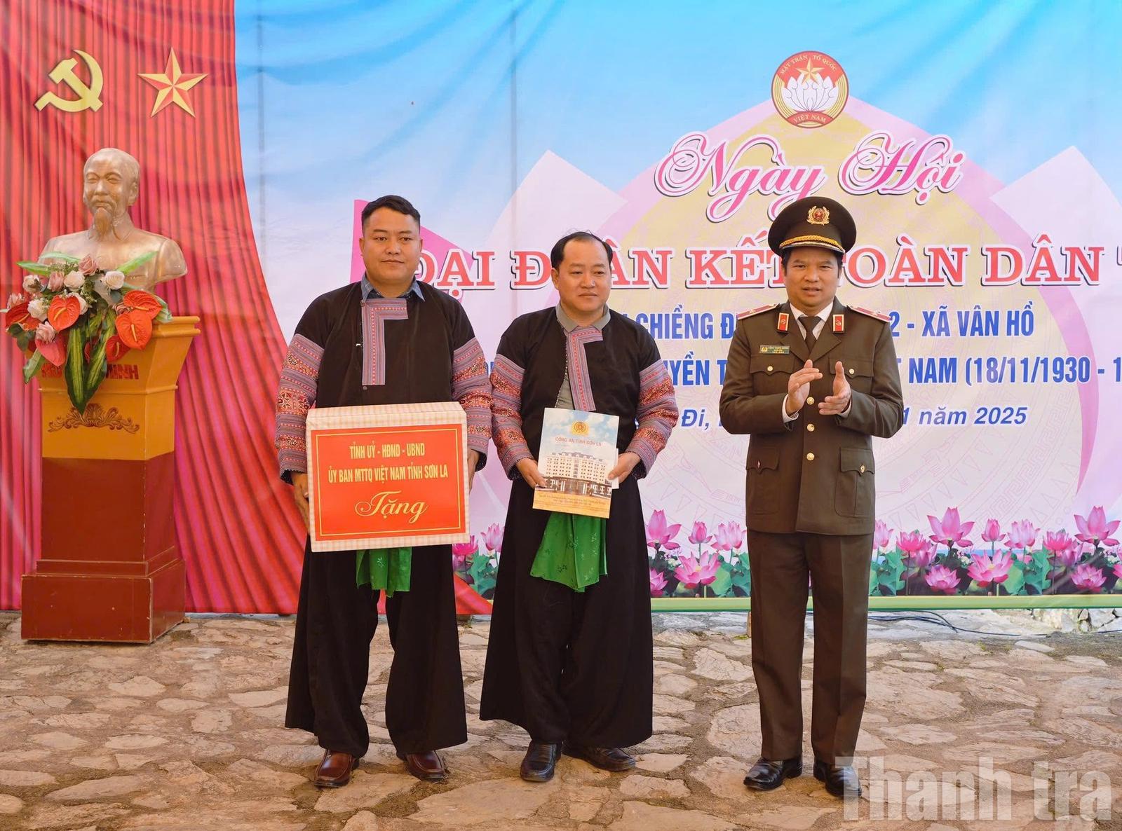Thiếu tướng Đặng Trọng Cường, Giám đốc Công an tỉnh Sơn La đã dự Ngày hội Đại đoàn kết toàn dân tộc với Nhân dân bản Chiềng Đi 1 và bản Chiềng Đi 2, xã Vân Hồ. Ảnh: ND