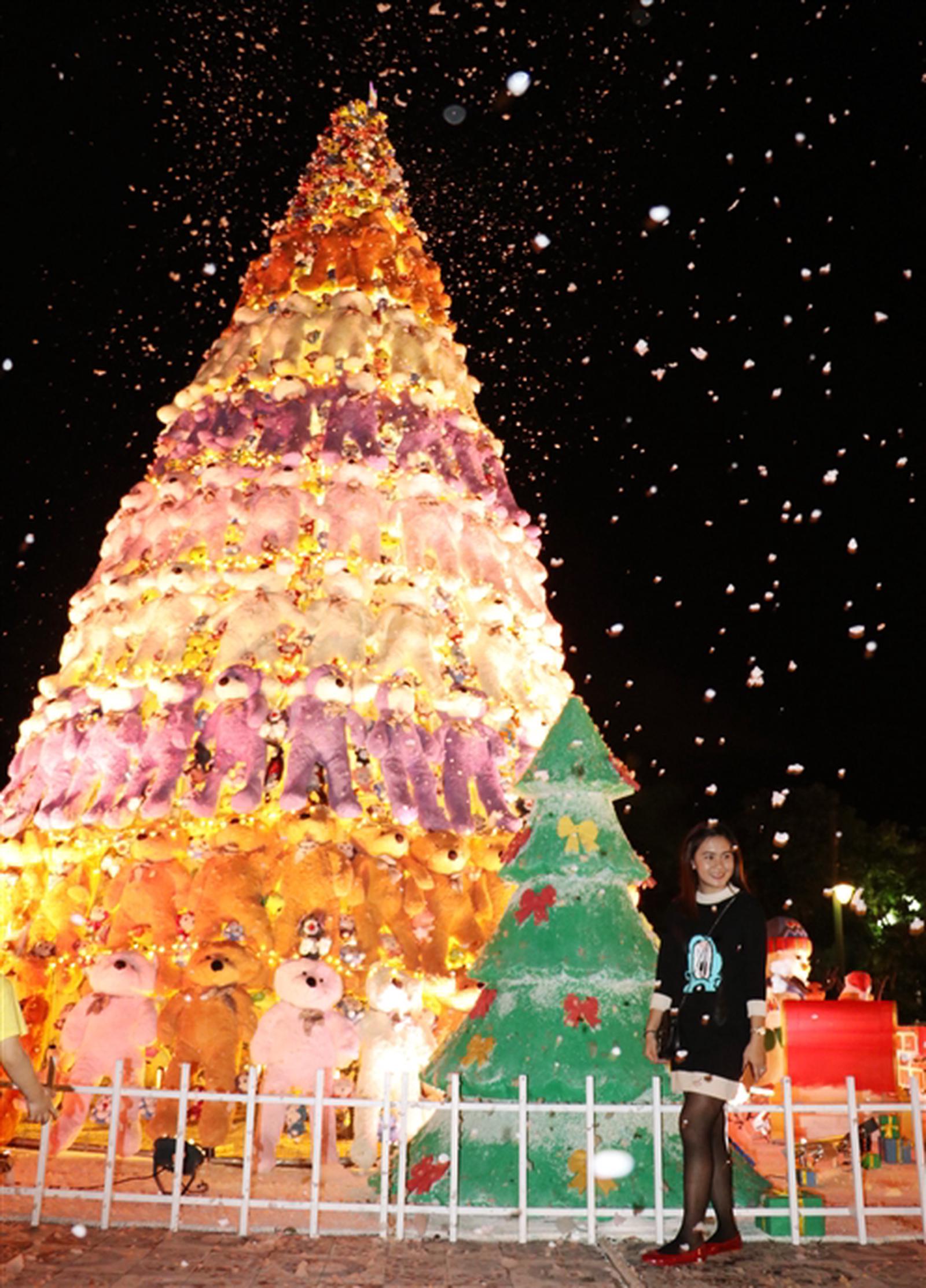 Đêm xuống, cây thông gấu bông rực sáng lung linh, và những bông tuyết to nhỏ rơi trắng nền trời đêm đem thẳm. Thánh ca réo rắt ngân vang khắp mọi nẻo đường Asia Park. Khách đến công viên ngỡ mình đang lạc bước ở một công viên nơi xứ lạnh, chứ không phải ở thành phố bên sông Hàn.