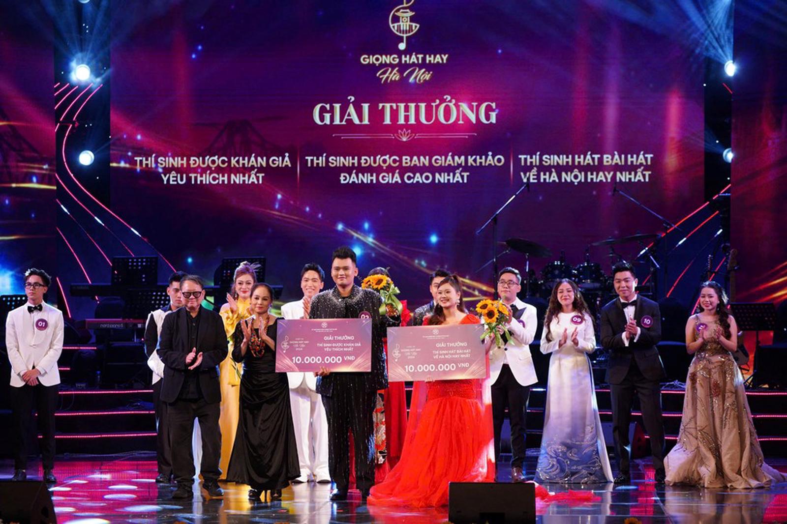 Thí sinh Lưu Thị Phương Thảo đạt giải hát bài hát về Hà Nội hay nhất; Thí sinh Mai Nguyễn Anh nhận giải thí sinh được khán giả yêu thích nhất. Ảnh: TH