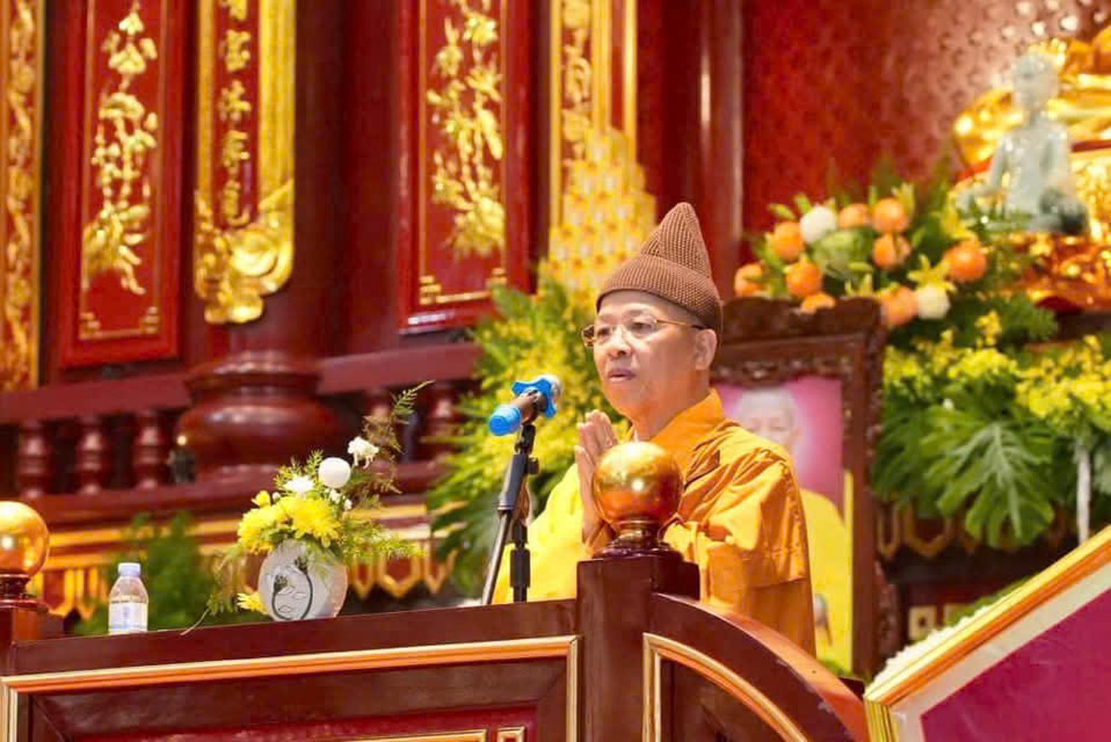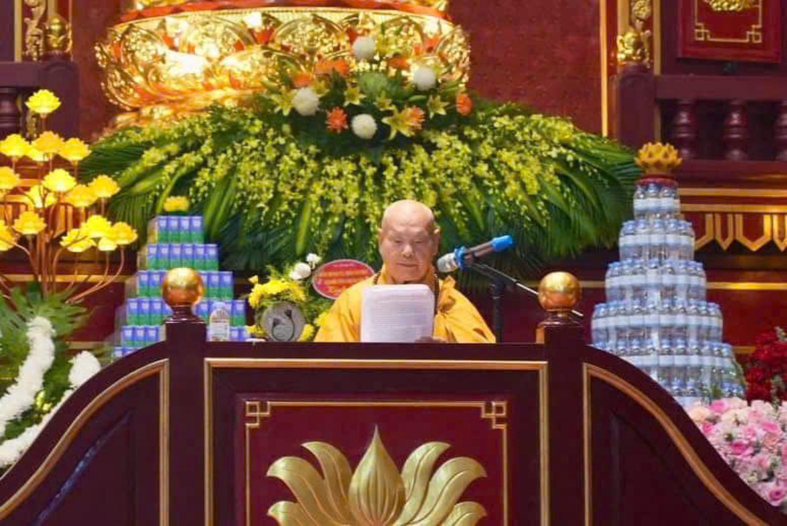 Hoà thượng Thích Thanh Quyết, Phó Chủ tịch Hội đồng Trị sự TƯ GHPGVN phát biểu tưởng niệm, ảnh: TV