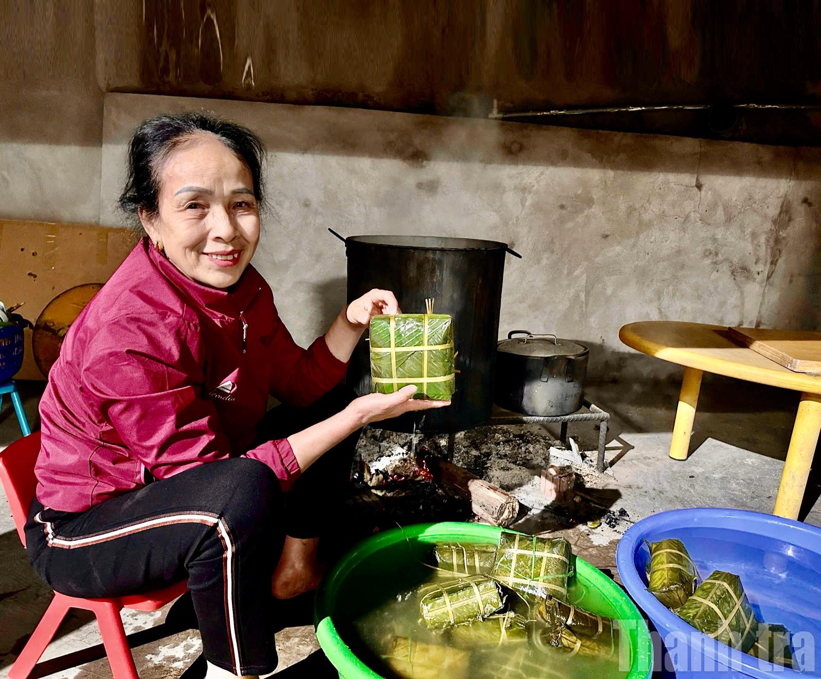 “Tôi nhớ xưa lắm rồi, có khi cả xóm gói bánh chung một đêm”, bà Chuyền nhớ lại. “Trẻ con được giao rửa lá, nhặt sạn trong gạo; người lớn thì gói bánh, buộc lạt. Đêm đến, mọi người thay nhau canh nồi bánh, vừa tiếp củi vừa kể chuyện, nói cười rôm rả mà không ai thấy mệt hay buồn ngủ”.