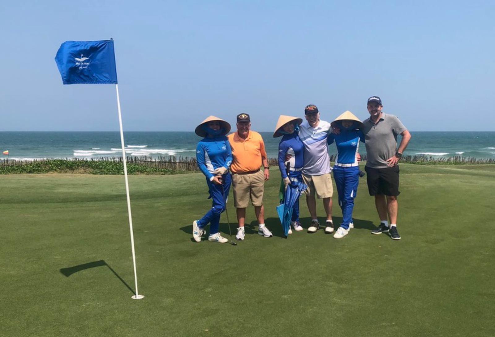 Steve Melnikoff (thứ 3 từ phải sang) tận hưởng buổi chơi gôn với những người bạn và caddie tại BRG Đà Nẵng Golf Resort.