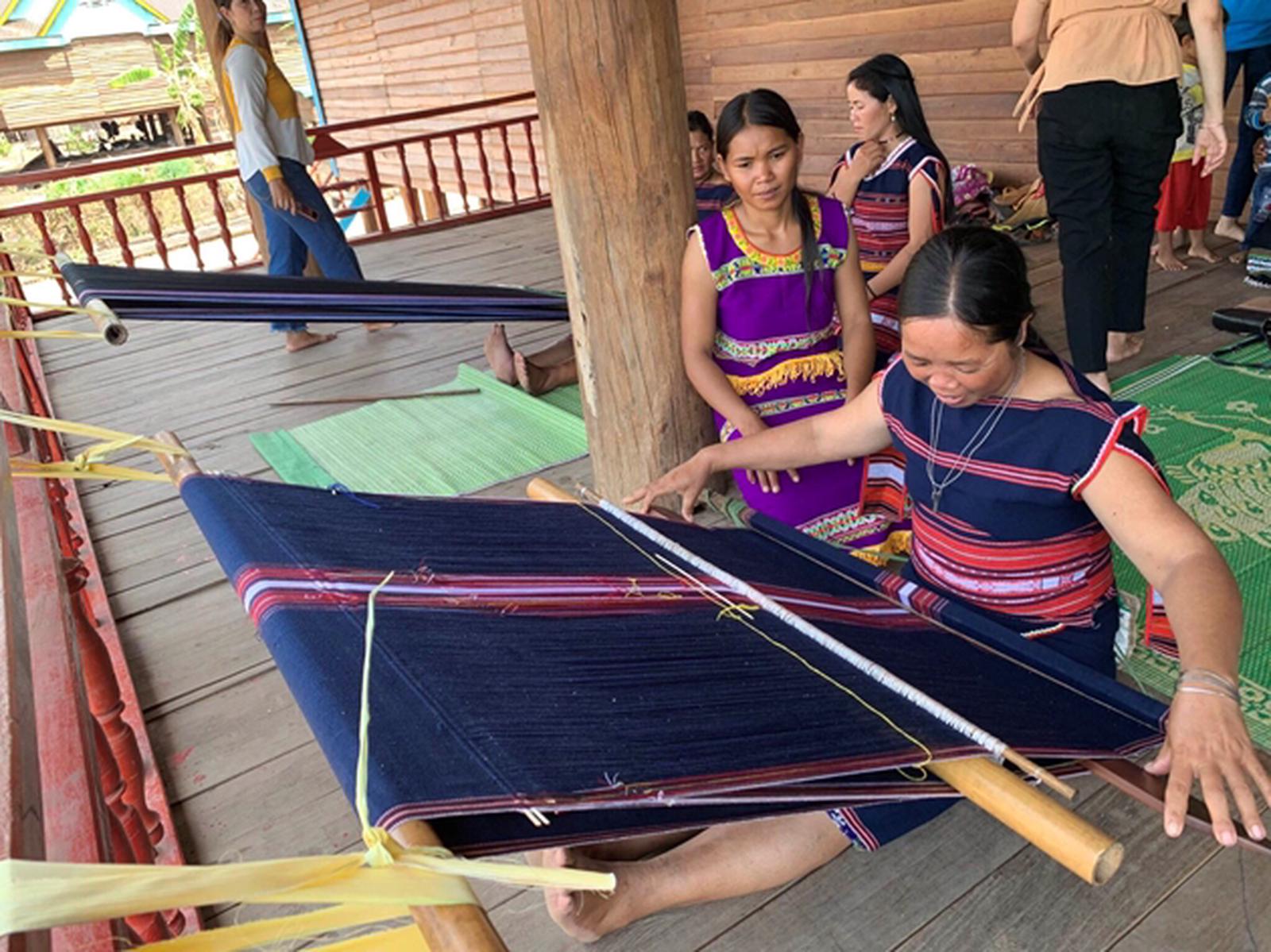 Phụ nữ làng Nhang Lớn dệt thổ cẩm. Ảnh: MT