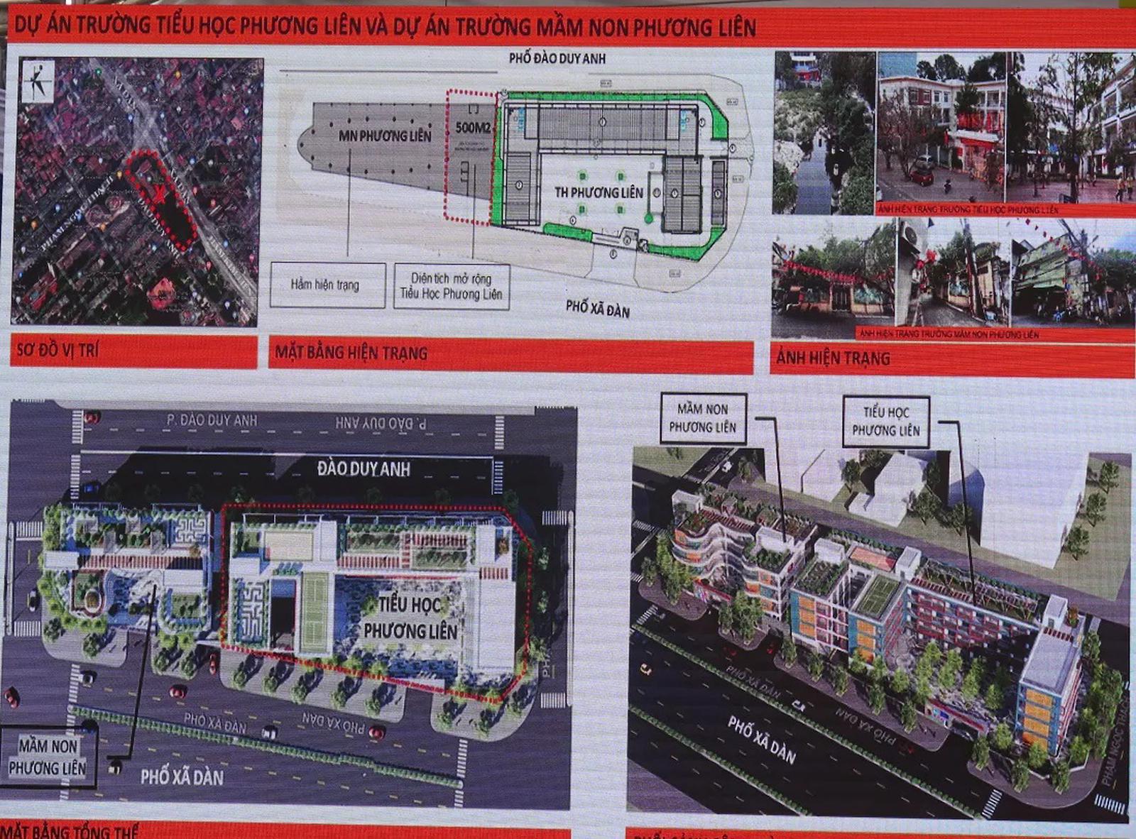 Dự án cải tạo, mở rộng Trường Tiểu học Phương Liên được xây bổ sung 1 khối nhà học cao 4 tầng và 1 tầng hầm; cải tạo, nâng 1 tầng tại khối nhà học, hiệu bộ hiện trạng (từ 3 lên 4 tầng) và sắp xếp lại các phòng học, phòng chức năng để đạt chuẩn quốc gia; mua sắm bổ sung trang thiết bị. Tổng mức đầu tư của cả 2 dự án là gần 150 tỷ đồng.