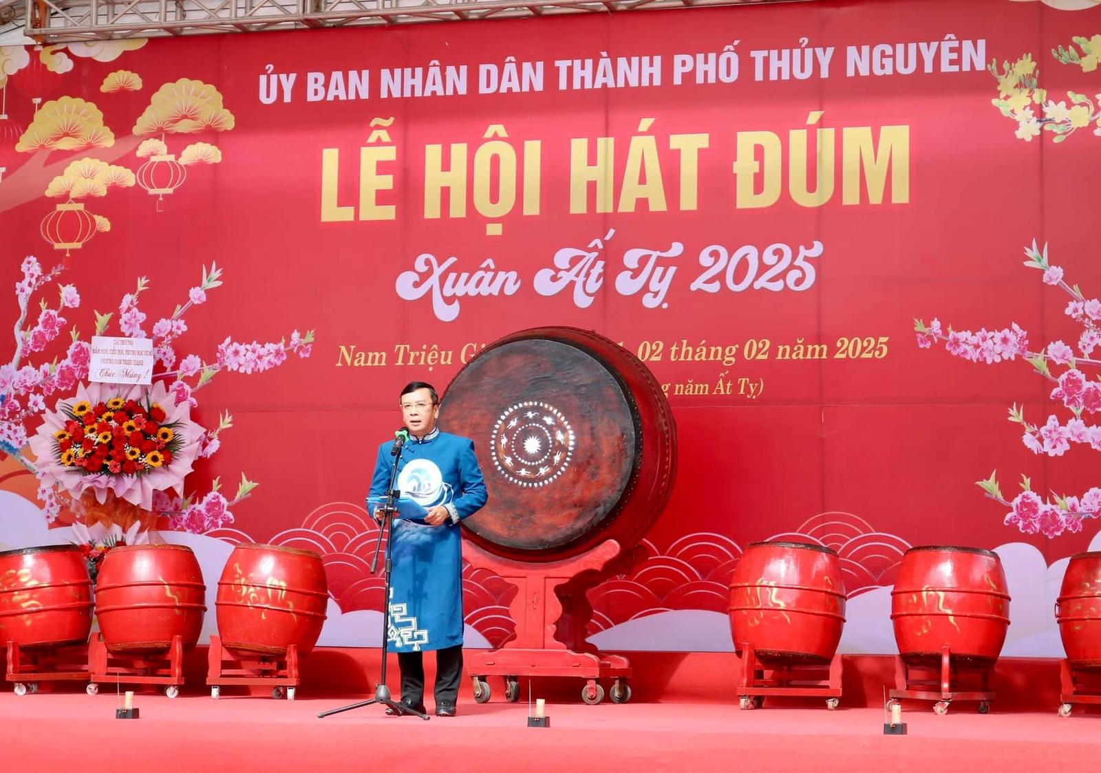 Phát biểu khai mạc Lễ hội, Phó Chủ tịch UBND thành phố Thủy Nguyên Uông Minh Long, Trưởng Ban tổ chức Lễ hội hát Đúm xuân Ấy Tỵ 2025 nhấn mạnh: Hát Đúm là loại hình nghệ thuật dân gian độc đáo, đã gắn bó với người dân Thủy Nguyên từ bao đời nay. Đây không chỉ là một hình thức biểu diễn nghệ thuật mà còn là cách thể hiện tinh thần đoàn kết, gắn bó của cộng đồng, là nơi lưu giữ những truyền thuyết, phong tục tập quán truyền thống của địa phương.