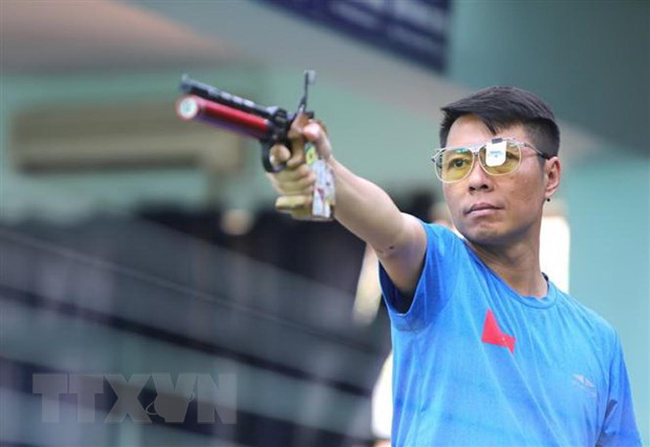 Vận động viên bắn súng Trần Quốc Cường nhiều lần giành huy chương Vàng SEA Games, huy chương Đồng ASIAD 2018, tham dự Olympic 2016, bắt đầu tập luyện trở lại. (Ảnh: Thành Đạt/TTXVN)