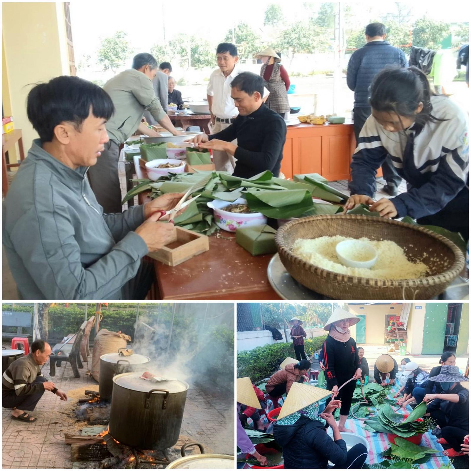 Người dân thôn Hợp Tiến tập trung gói bánh để dâng vua Mai Hắc Đế