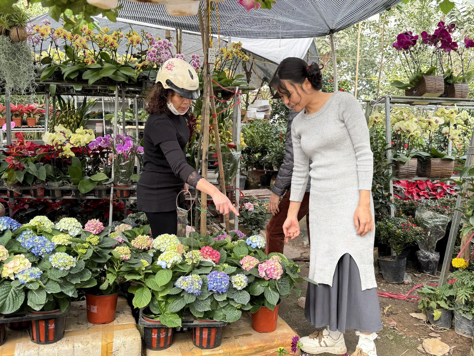 Thời điểm này phố Hoàng Hoa Thám, vốn là con phố bán cây cảnh và các loại hoa, nhất là dịp tết, đã bắt đầu tấp nập kẻ bán người mua. Cả con phố trở nên rực rỡ với muôn loài hoa, cây cảnh đem đến không khí Tết rộn ràng.