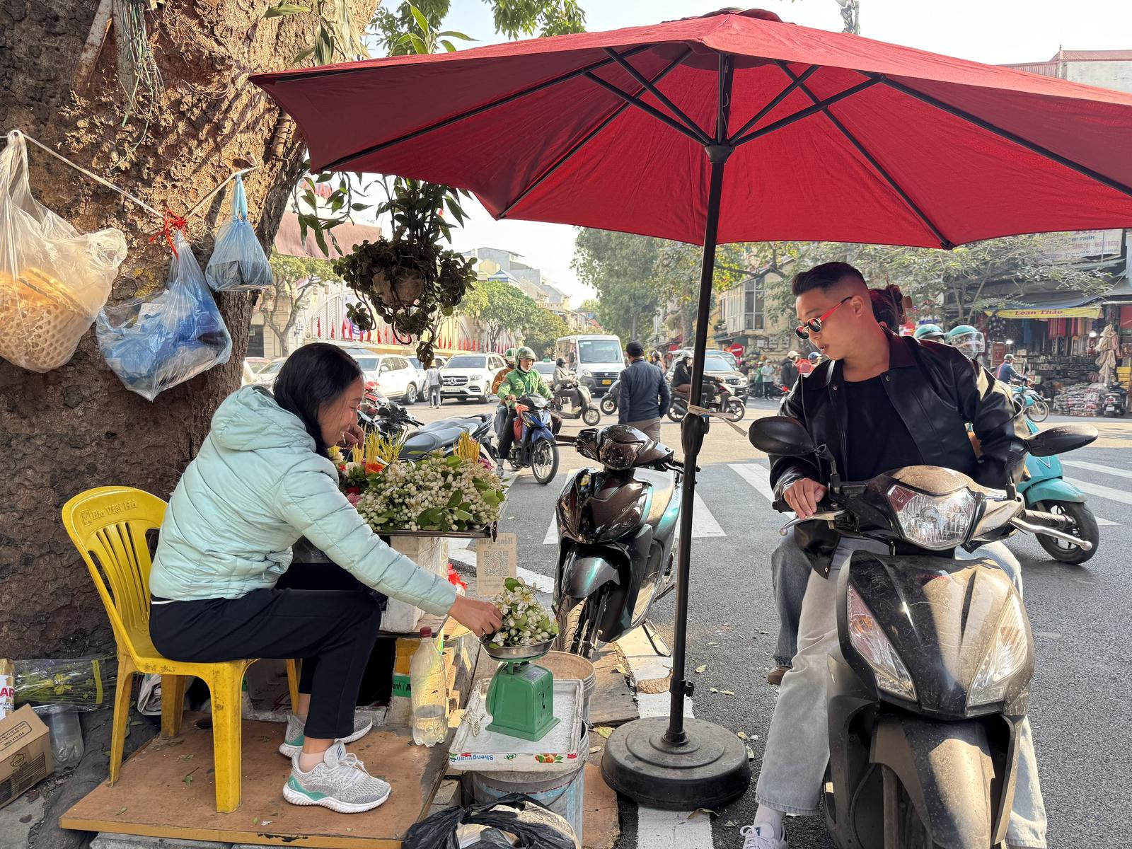 Đó là vào các buổi sớm tinh mơ, nhất là những dịp lễ, Tết hay ngày rằm, mùng một, trên mỗi nẻo đường, góc phố Hàng Mã, Hàng Khoai, Hàng Lược, hay cổng chợ Đồng Xuân, chợ Hôm, chợ Hàng Da… của Thủ đô thấp thoáng những cụ già với gánh hàng hoa gói đủ sắc màu thơm phức. Xung quanh gánh hoa là các bà, các mẹ xúm lại xếp hàng để mua hoa về thắp hương.