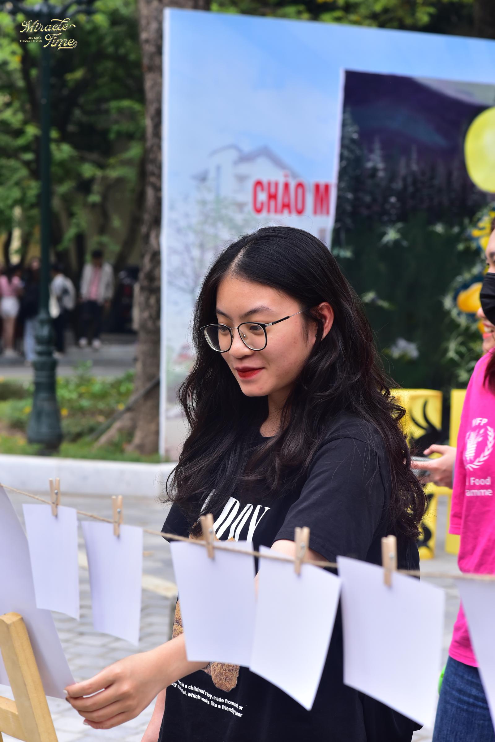 Nữ sinh viên Khoa Xuất bản thích thú khi thấy hình ảnh bản thân xuất hiện tại triển lãm ảnh