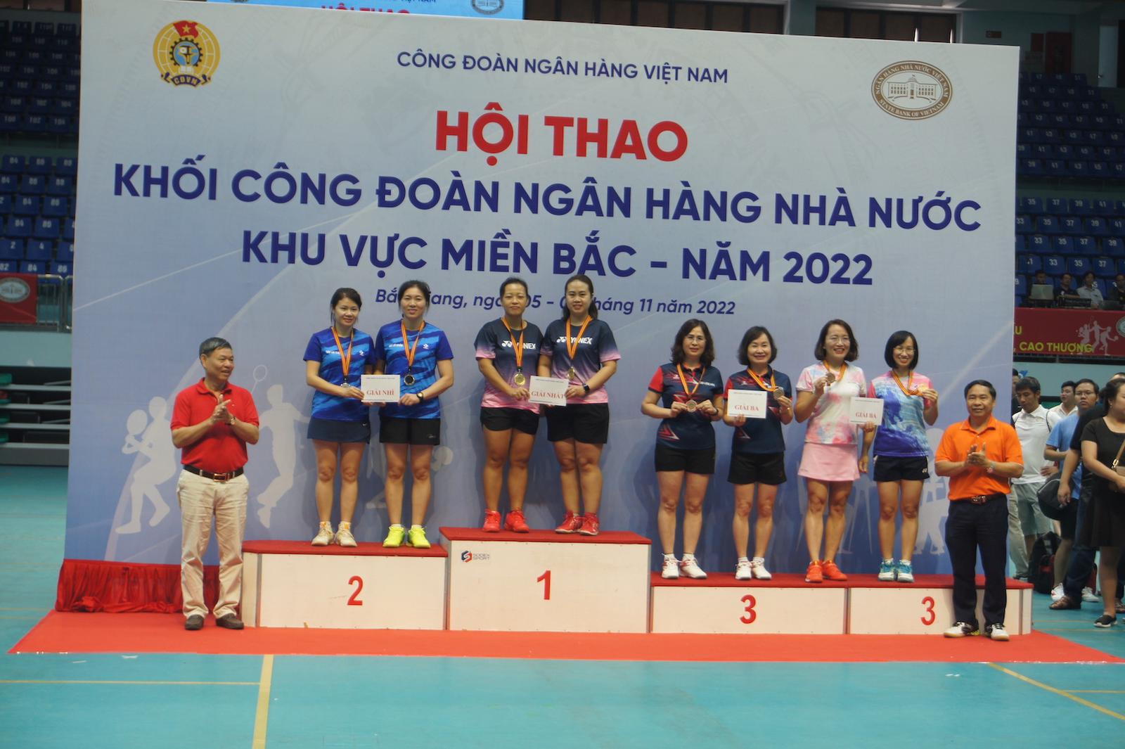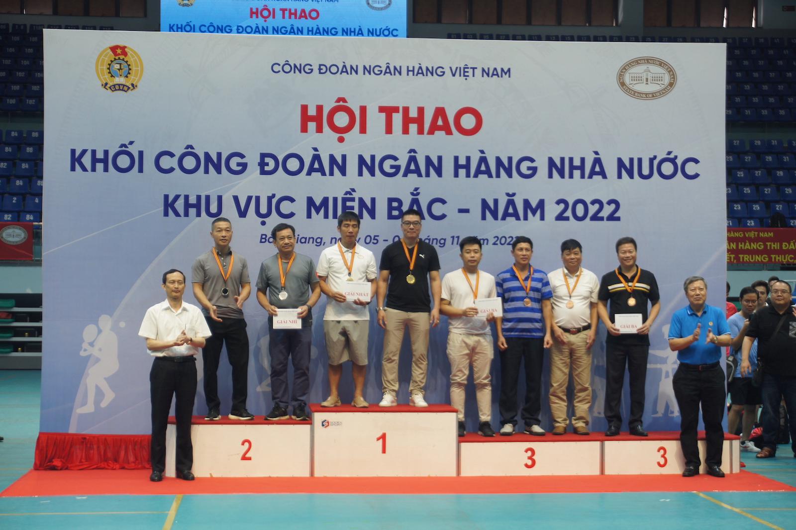 Môn cầu lông: Nội dung đôi nam 46 tuổi trở lên: Giải Nhất: Nguyễn Tiến Hải và Nguyễn Thanh Xuân (NHNN Hòa Bình); Giải Nhì: Đỗ Quang Huy và Phạm Văn Khoa (NHNN Lào Cai). Đôi nam dưới 46 tuổi: Giải Nhất: Ngô Đức Dương và Ngô Phương Vi (NHNN TW); Giải Nhì: Lê Công Tuấn và Đinh Phương Bách (NHNN Lạng Sơn). Đôi nữ: Giải Nhất: Trần Thị Ngọc Hậu và Hoàng Mai Phương (NHNN Sơn La); Giải Nhì: Đinh Thị Hồng Nghĩa Trần Mỹ Tiệp (NHNN Lai Châu). Đôi nam nữ 46 tuổi trở lên: Giải Nhất: Nguyễn Đức Việt - Đỗ Thị Kim Thơm (NHNN Phú Thọ); Giải Nhì: Đặng Hồng Thắng - Giang Châu Loan (NHNN Sơn La). Đôi nam nữ dưới 46 tuổi: Giải Nhất: Lê Thảo Dung - Đỗ Hải Nam (NHNN Lai Châu); Giải Nhì: Nguyễn Văn Khoa - Nguyễn Thị Diệu Hiền (NHNN TW).