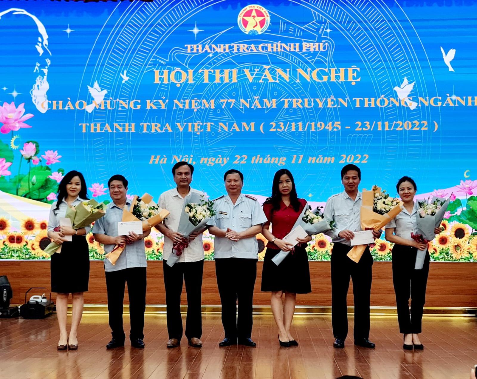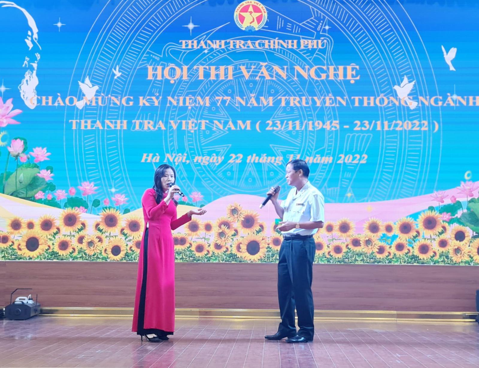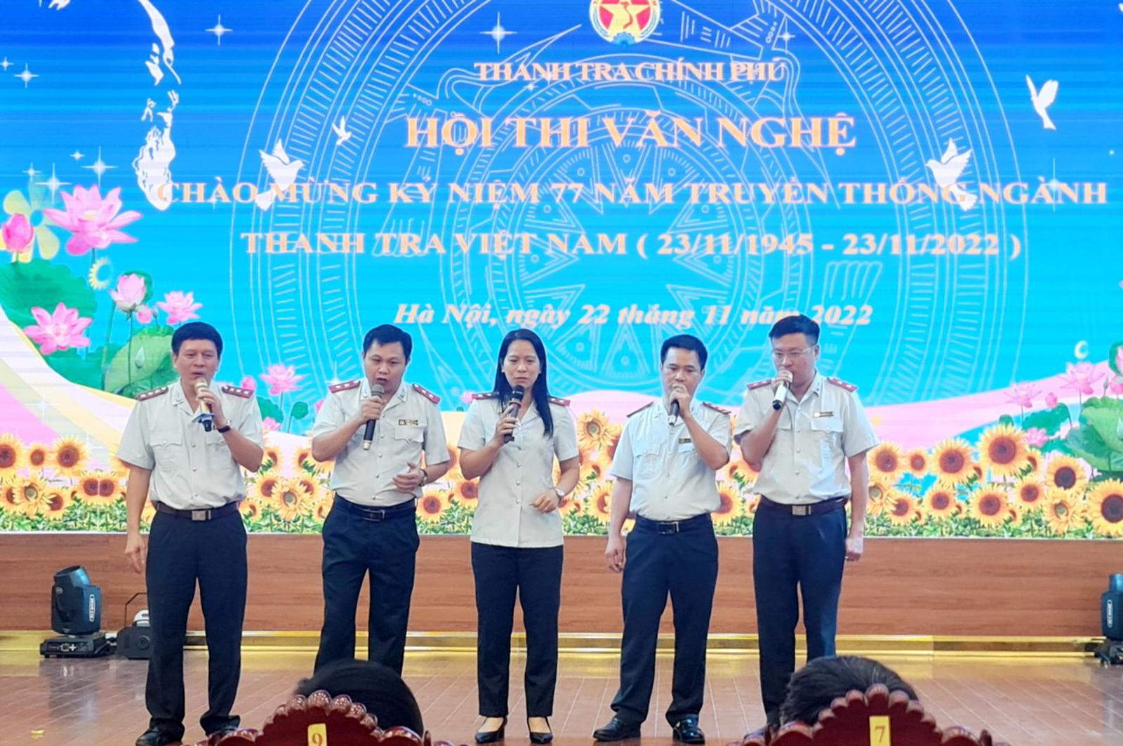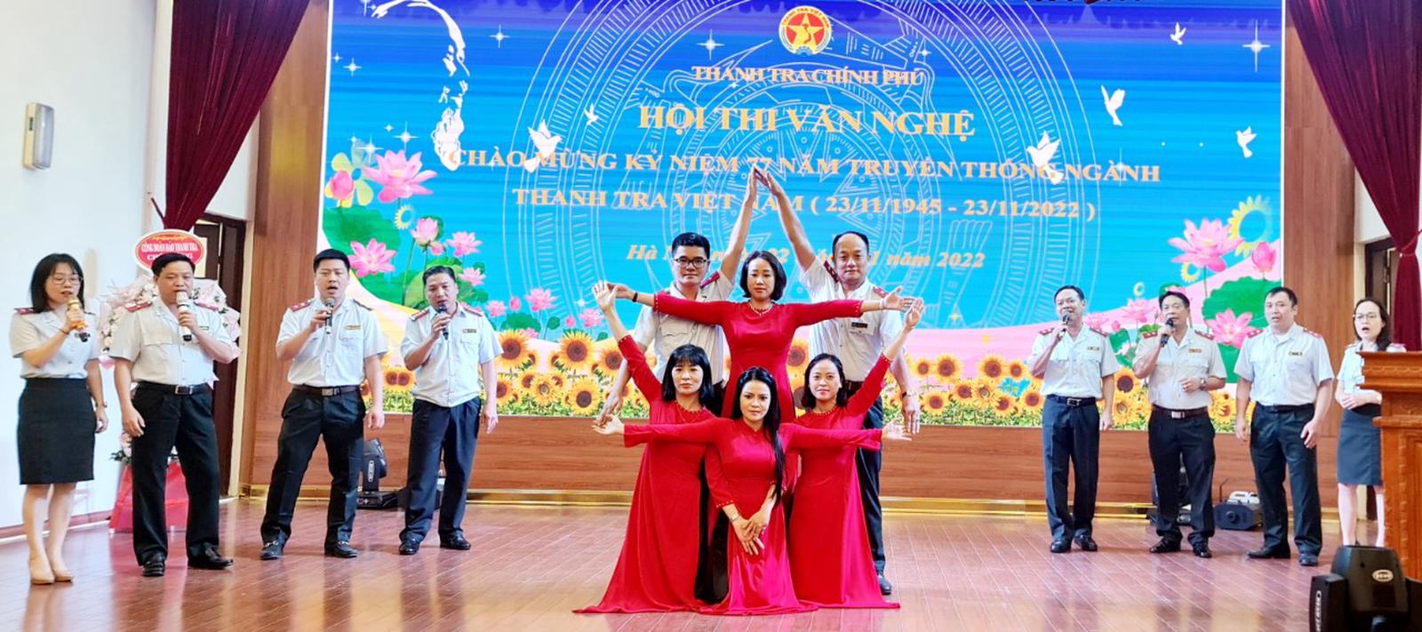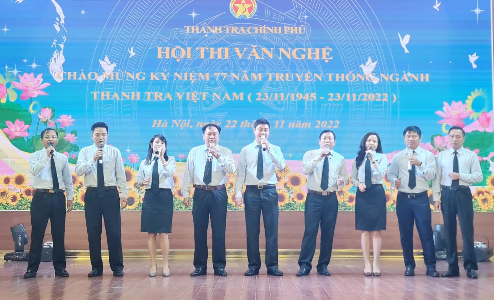 (Thanh tra) - Ngày 22/11, Thanh tra Chính phủ tổ chức Hội thi Văn nghệ chào mừng kỷ niệm 77 năm Ngày Truyền thống ngành Thanh tra Việt Nam (23/11/1945-23/11/2022). Tham dự có các Phó Tổng Thanh tra: Trần Ngọc Liêm, Bùi Ngọc Lam cùng các cán bộ, công chức, viên chức, người lao động Thanh tra Chính phủ.
