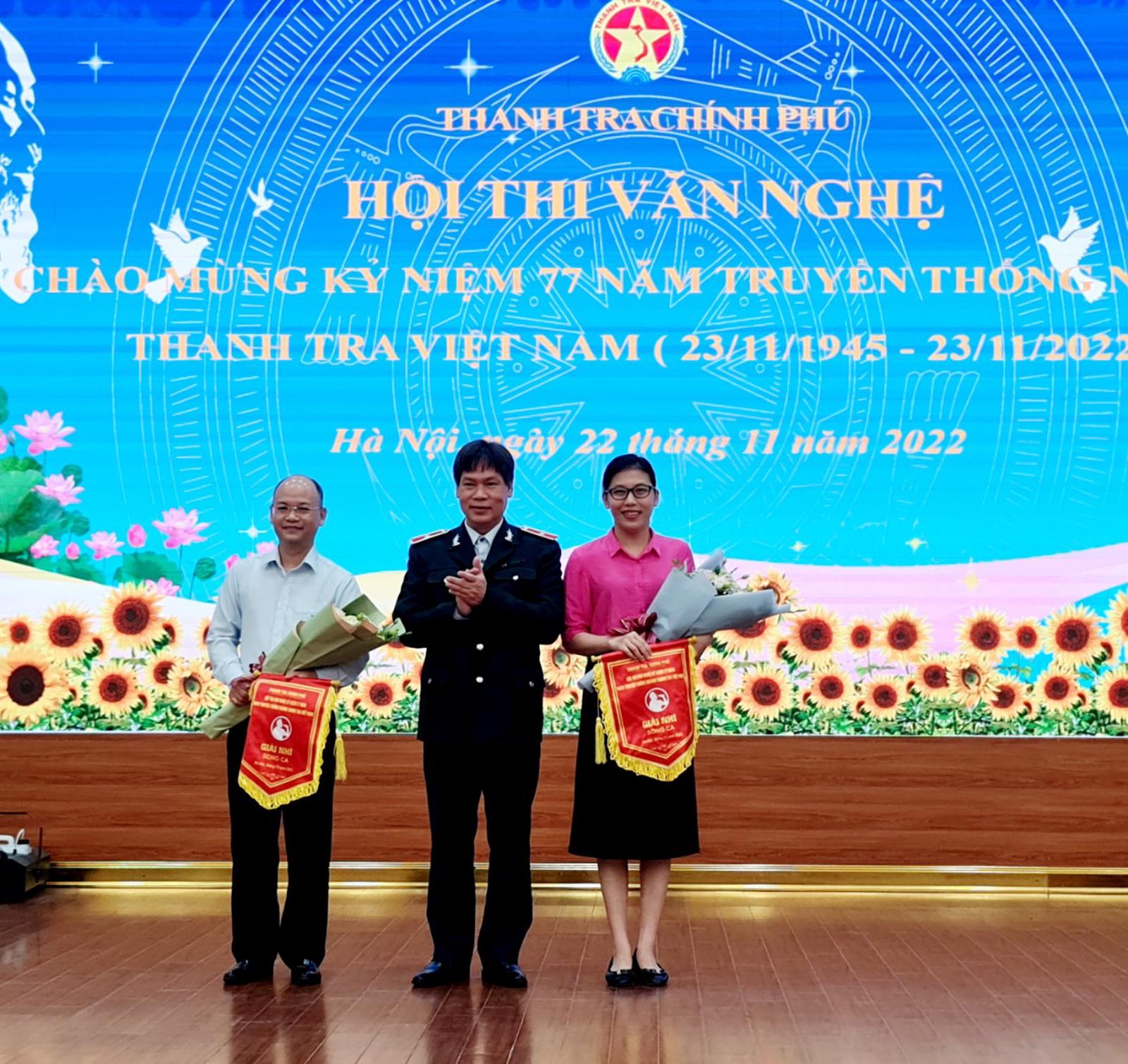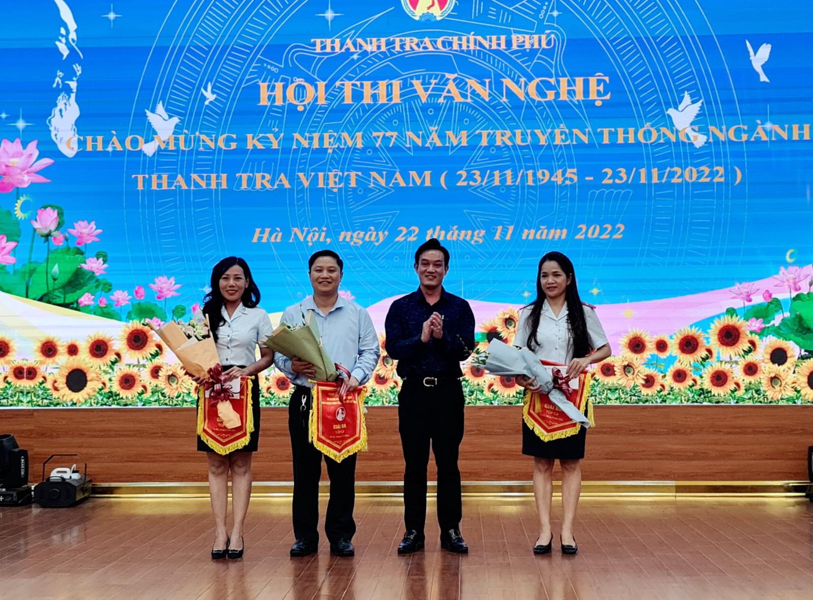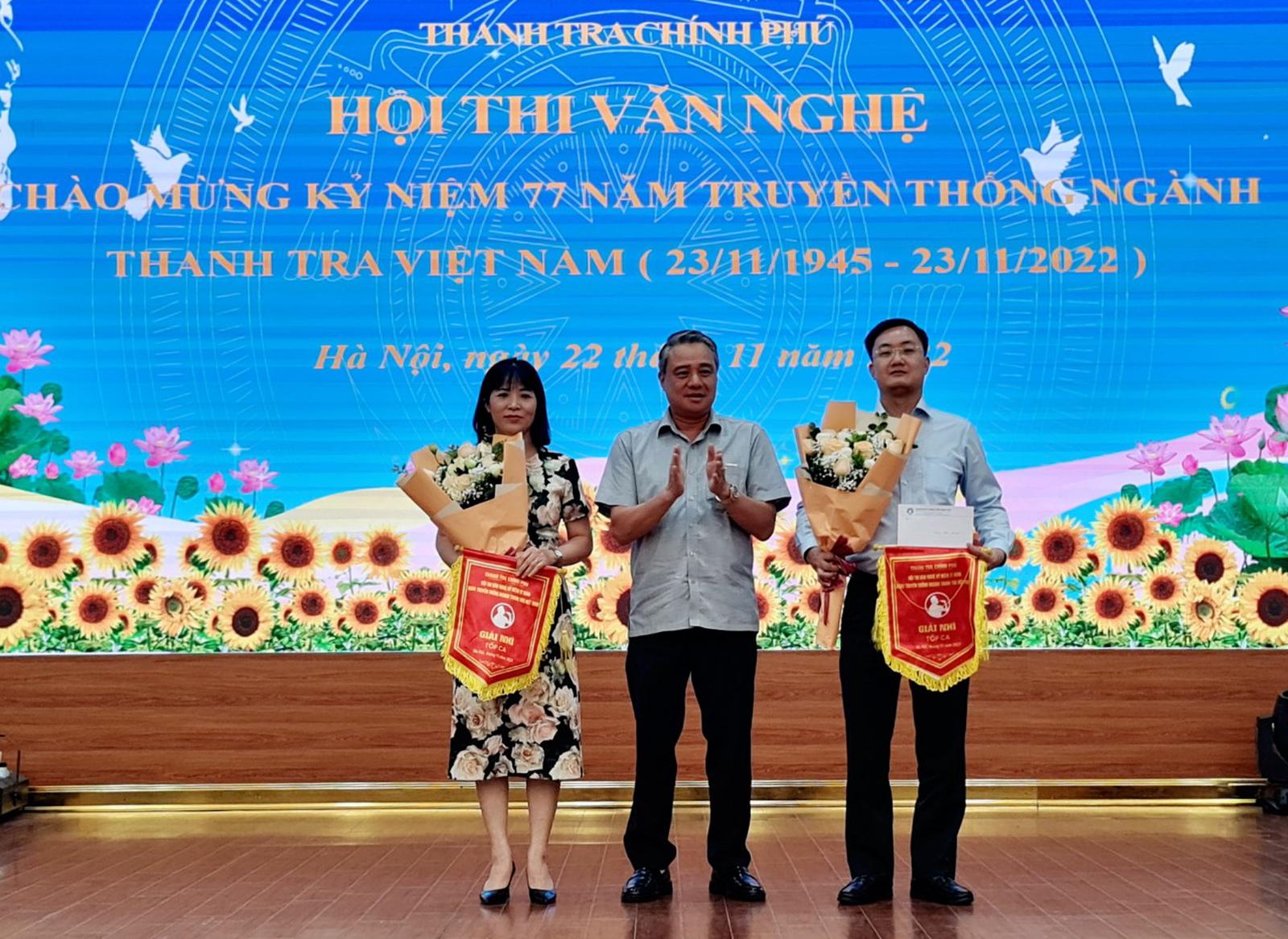 Phó Tổng Thanh tra Bùi Ngọc Lam trao Giải Nhất cho Vụ Pháp chế với hạng mục song ca. Ảnh: TH