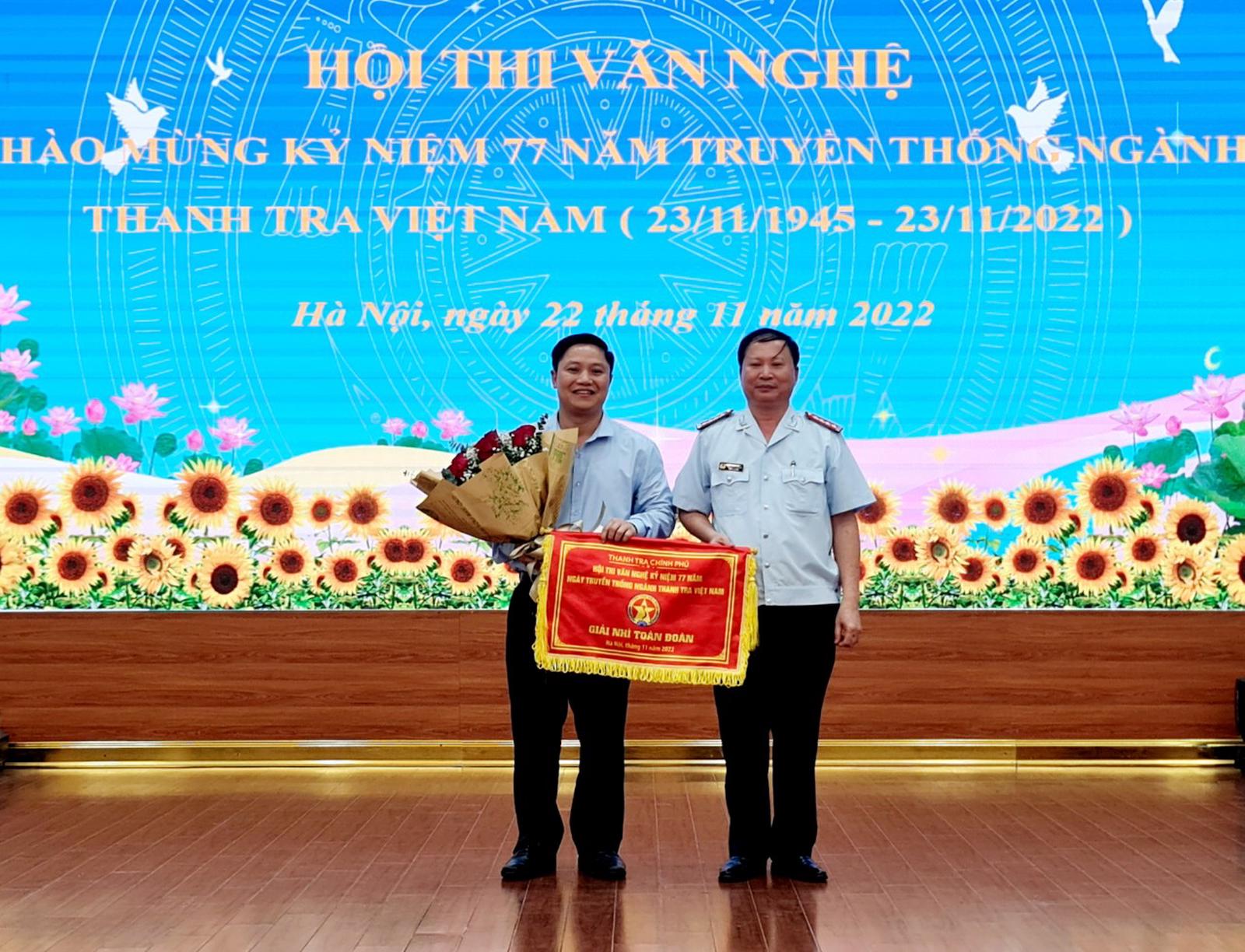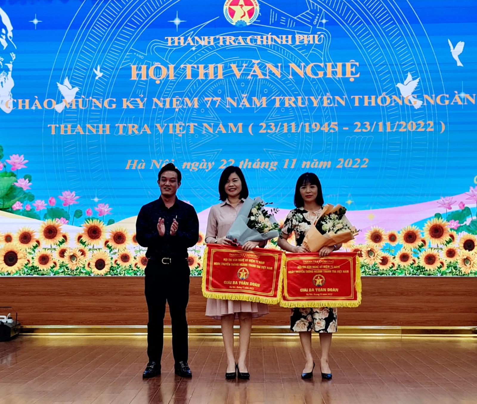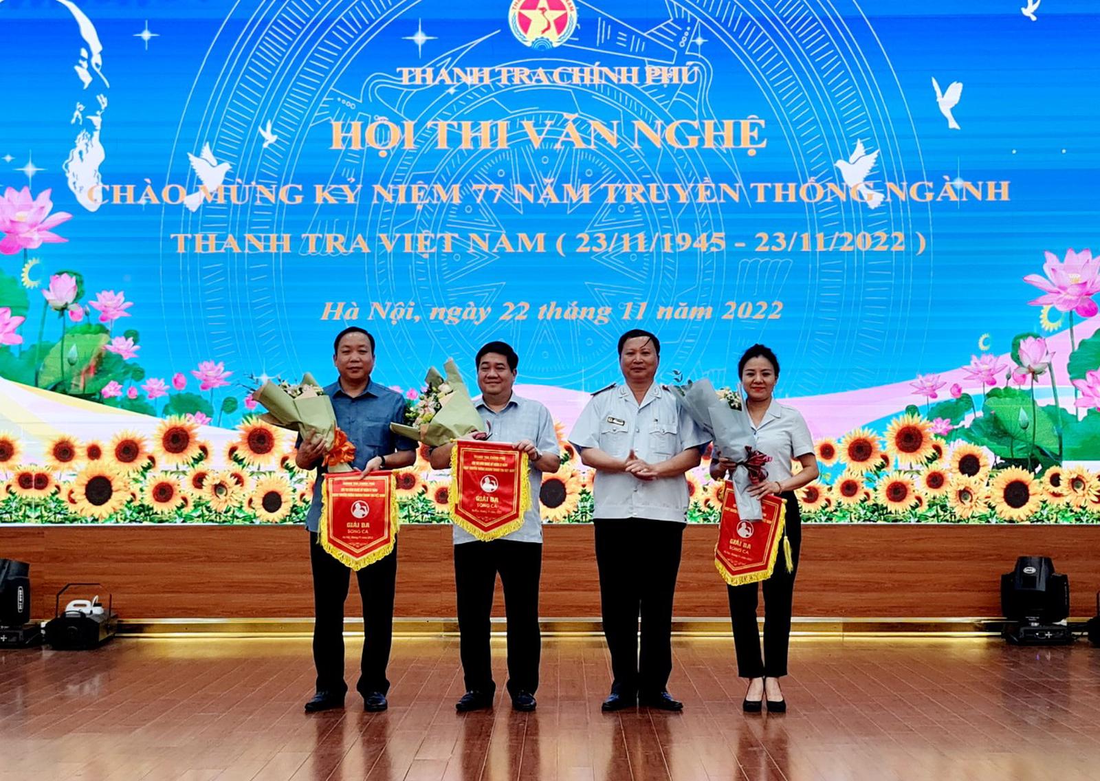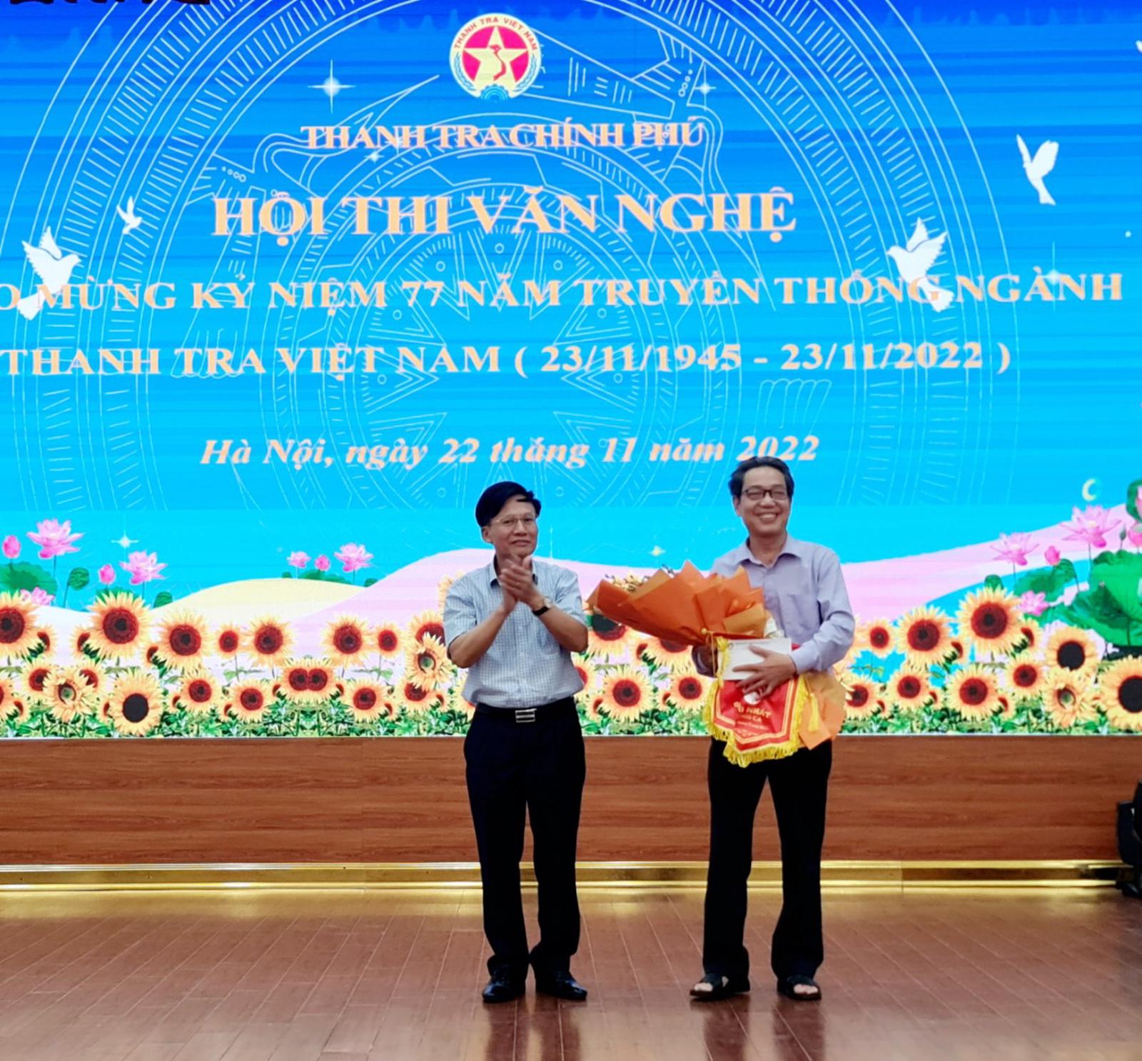 Phó Tổng Thanh tra Bùi Ngọc Lam trao Giải Nhất cho Vụ Pháp chế với hạng mục song ca. Ảnh: TH