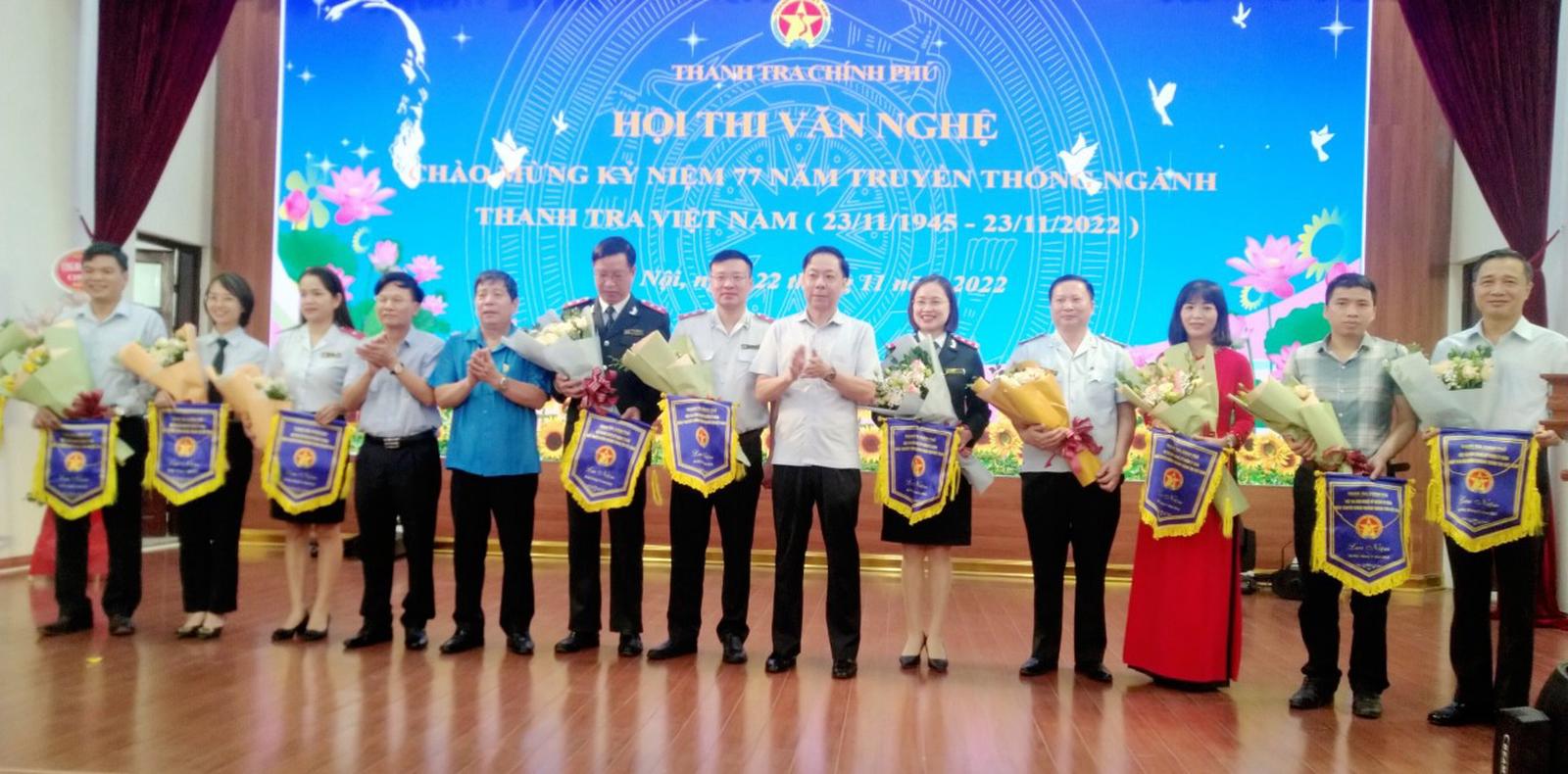 Phó Tổng Thanh tra Trần Ngọc Liêm tặng hoa cho các đội tham gia Hội thi Văn nghệ. Ảnh: TH