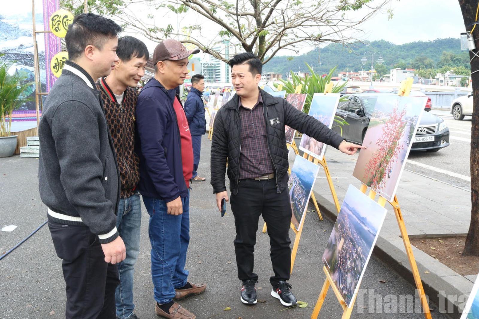 Du khách tham quan triển lãm ảnh ngoài trời tại Festival Sông Hồng 2025, tìm hiểu vẻ đẹp văn hóa, cảnh sắc Lào Cai qua những bức ảnh sống động. Ảnh: Bùi Bình