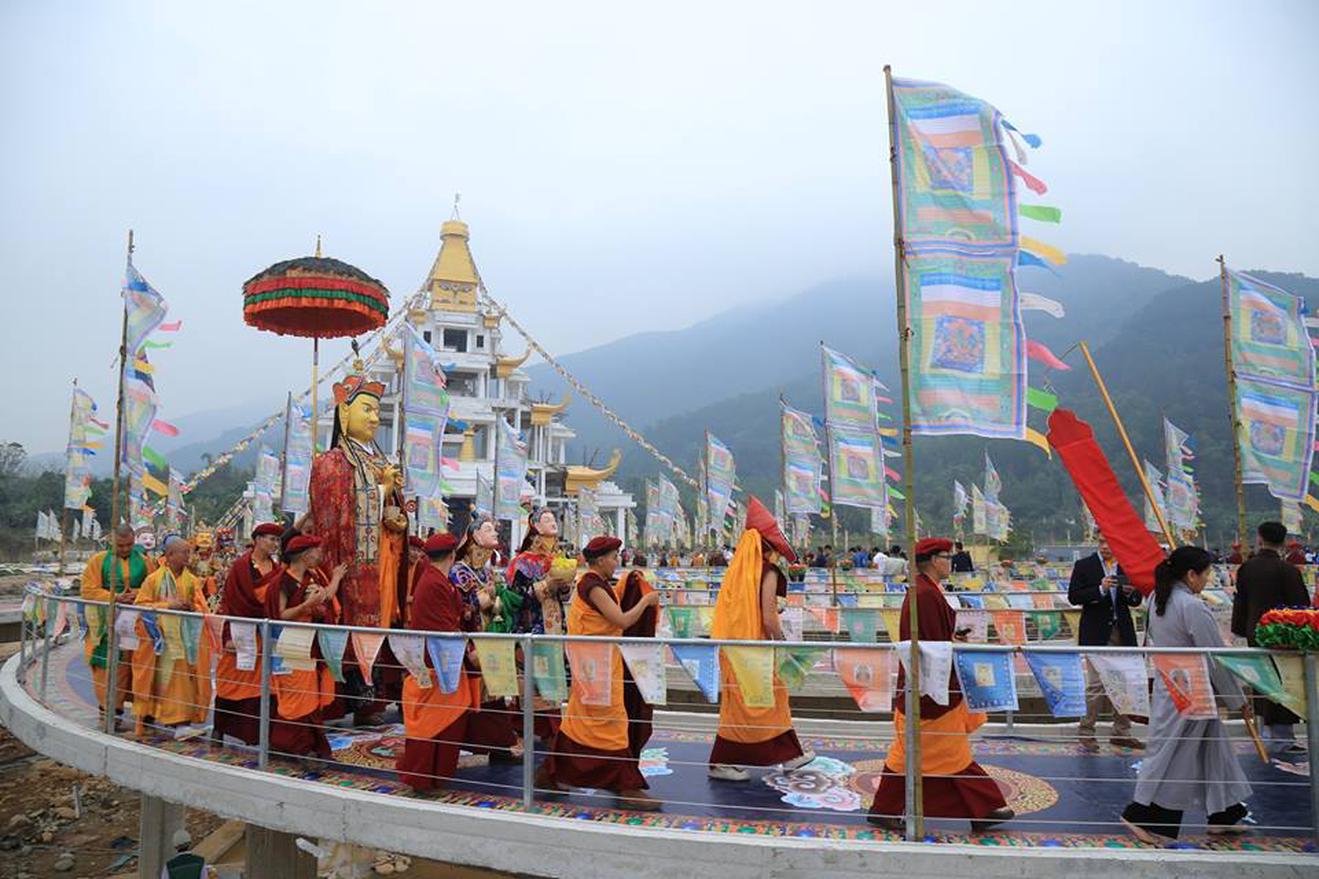 Trong màn trống hội chào mừng của các tăng ni, ngày 22/2,Đức Gyalwang Drukpacử hành lễ khai mở bức tranh thêu gấm Thongdrol Phật Quan Âm Thiên Thủ Thiên Nhãn và bức tranh đá quý Mandala Phật Quan Âm. Đây là hai Pháp bảo Phật giáo Kim Cương thừa có kích thước khổng lồ hiện đang giữ kỷ lục Tranh Phật lớn nhất Việt Nam.