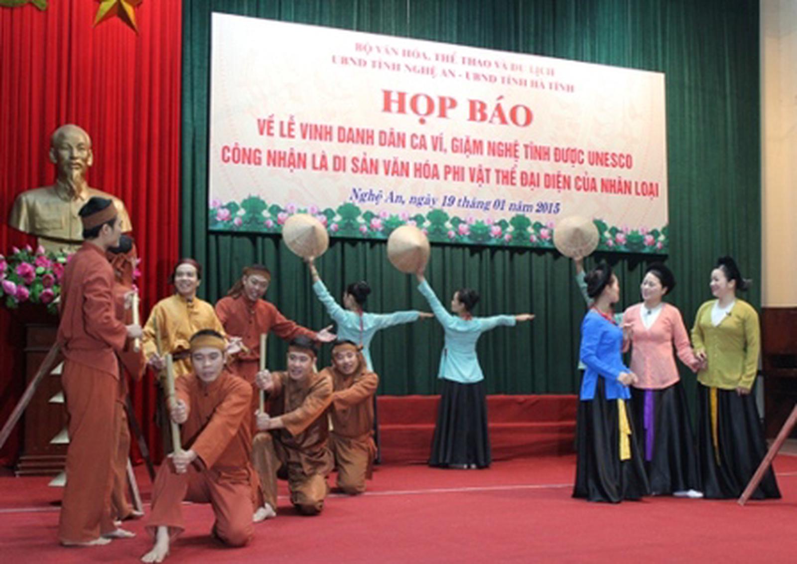 Dân ca ví, giặm Nghệ Tĩnh được Tổ chức Giáo dục, Khoa học và Văn hóa của Liên hiệp quốc (UNESCO) ghi danh là Di sản văn hóa phi vật thể đại diện của nhân loại trong phiên họp ngày 27/11/ 2014 tại Paris - Pháp.