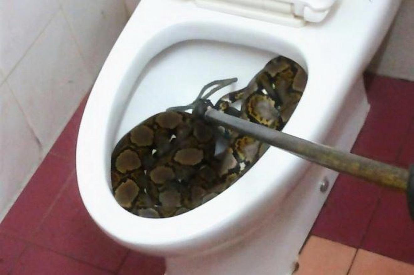 Một phụ nữ ở Klang, bang Selangor, Malaysia đã có một phen hú vía trong đời khi cô phát hiện một con trăn dài hơn 2 mét nằm cuộn tròn trong bồn cầu nhà vệ sinh.