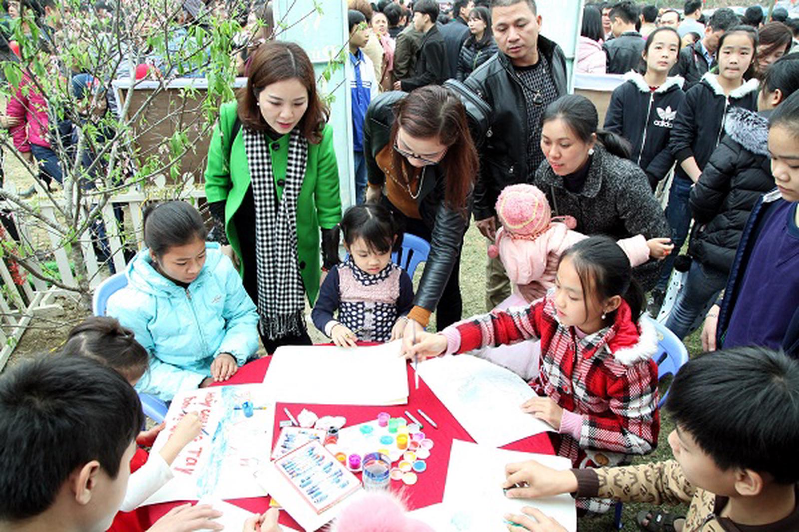 Các cháu thiếu nhi đến chơi Hội và tham gia thi vẽ tranh bảo vệ môi trường. Ảnh: TH