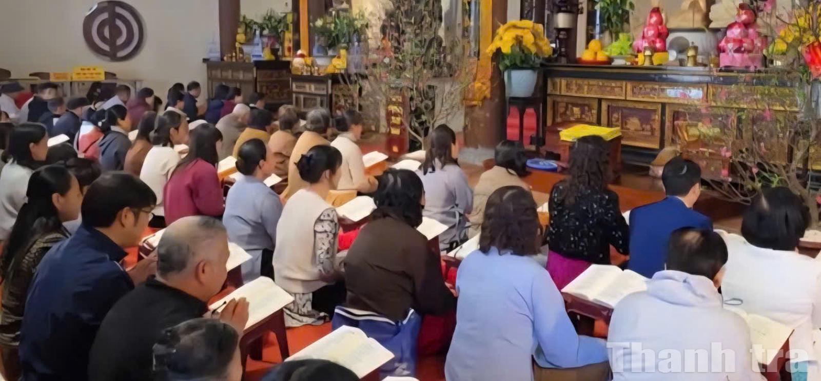 Các tăng ni, phật tử tham gia lễ khai hội Xuân an lạc Đại Tuệ 2026. Ảnh: Văn Thanh