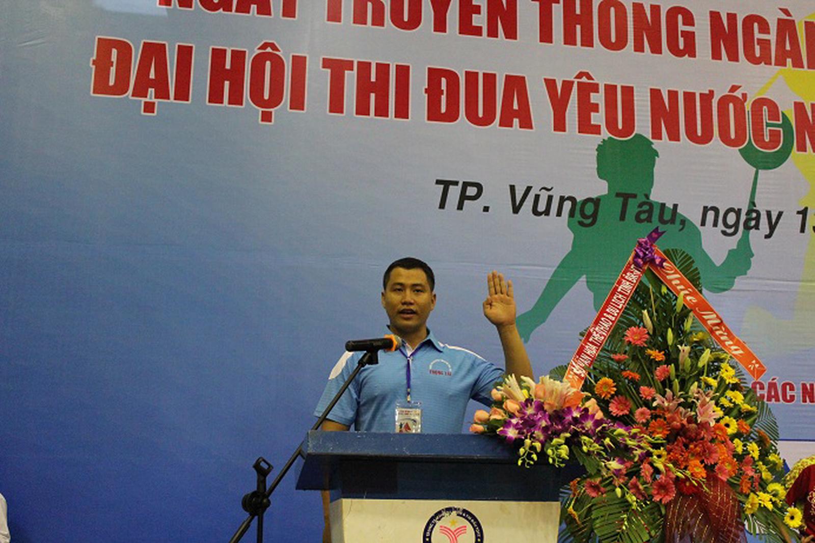 Ông Nguyễn Viết Thạch - đoàn TTCP đại diện các vận động viên lên tuyên thệ. Ảnh: TNG