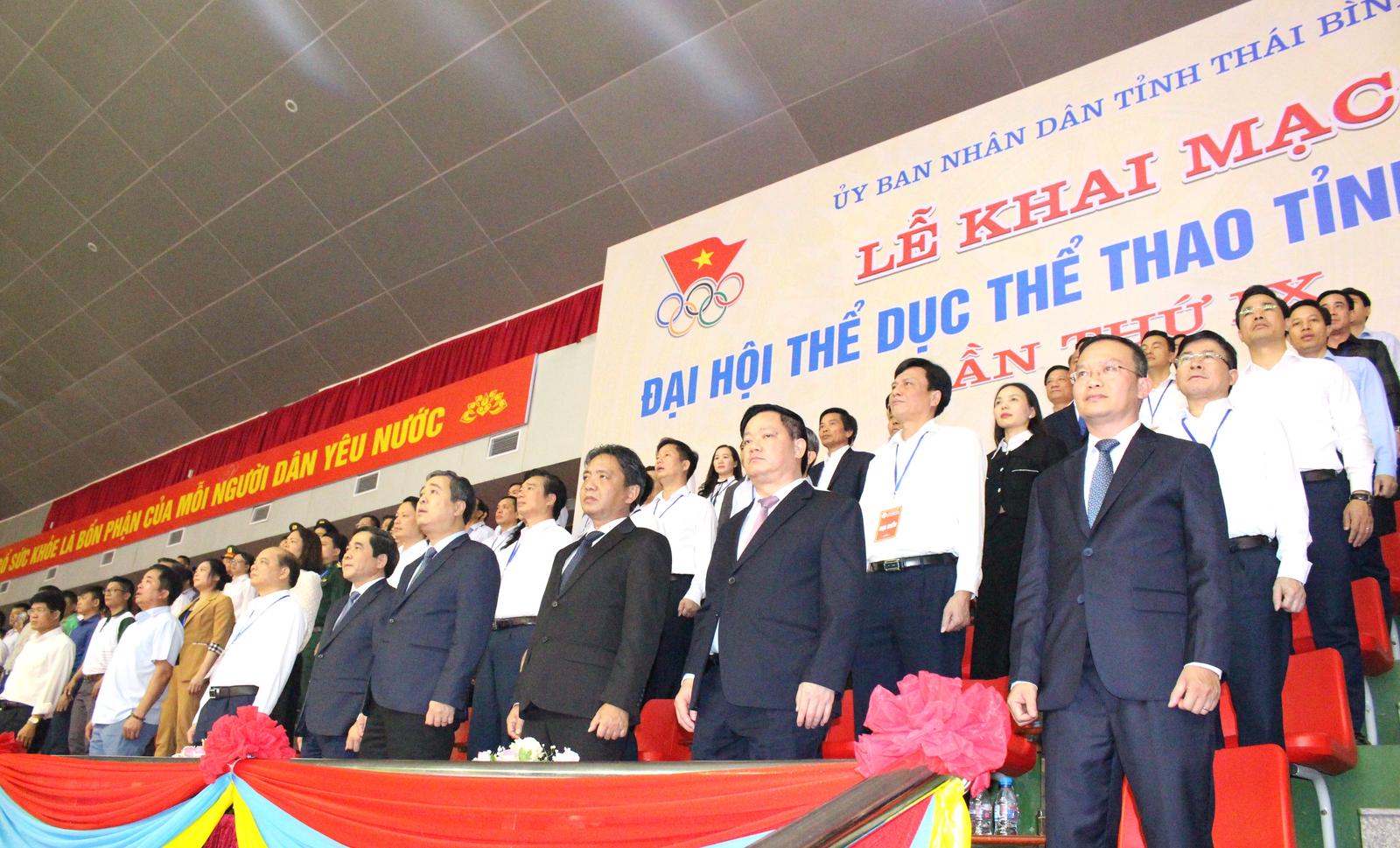 Các đại biểu Trung ương và tỉnh Thái Bình dự khai mạc Đại hội TDTT tỉnh Thái Bình lần thứ IX. Ảnh: Trọng Tài