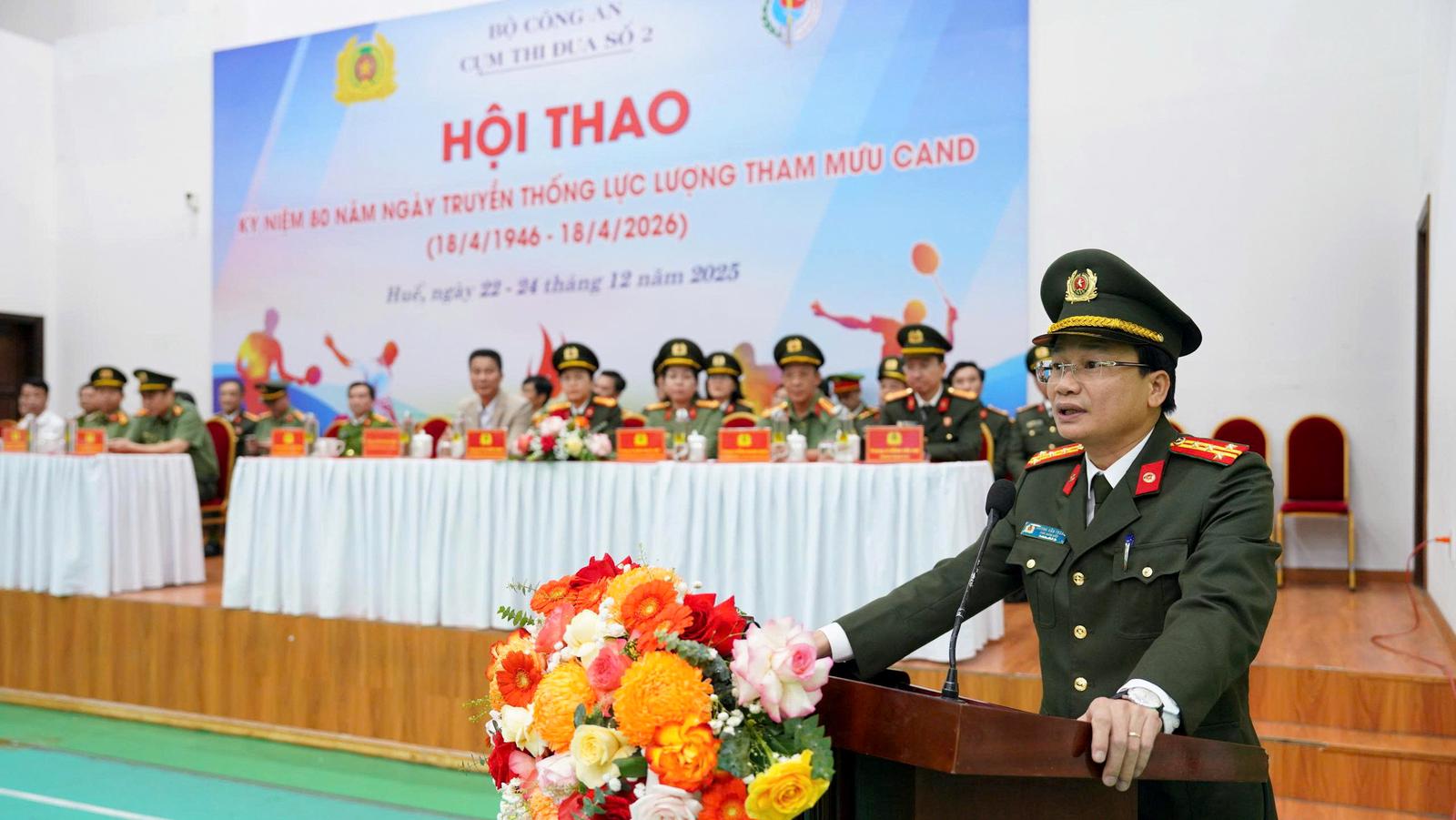 Phát biểu khai mạc Hội thao, Đại tá Dương Văn Thoan, Phó Giám đốc Công an TP Huế, Trưởng Ban Tổ chức Hội thao nhấn mạnh, việc tổ chức Hội thao kỷ niệm 80 năm Ngày truyền thống lực lượng Tham mưu Công an nhân dân của Cụm thi đua số 2 nhằm tạo không khí thi đua sôi nổi, động viên phong trào rèn luyện thân thể, nâng cao sức khỏe trong cán bộ, chiến sĩ lực lượng Tham mưu; đồng thời tăng cường mối quan hệ đoàn kết, giao lưu, học hỏi kinh nghiệm giữa Công an các thành phố trong Cụm.