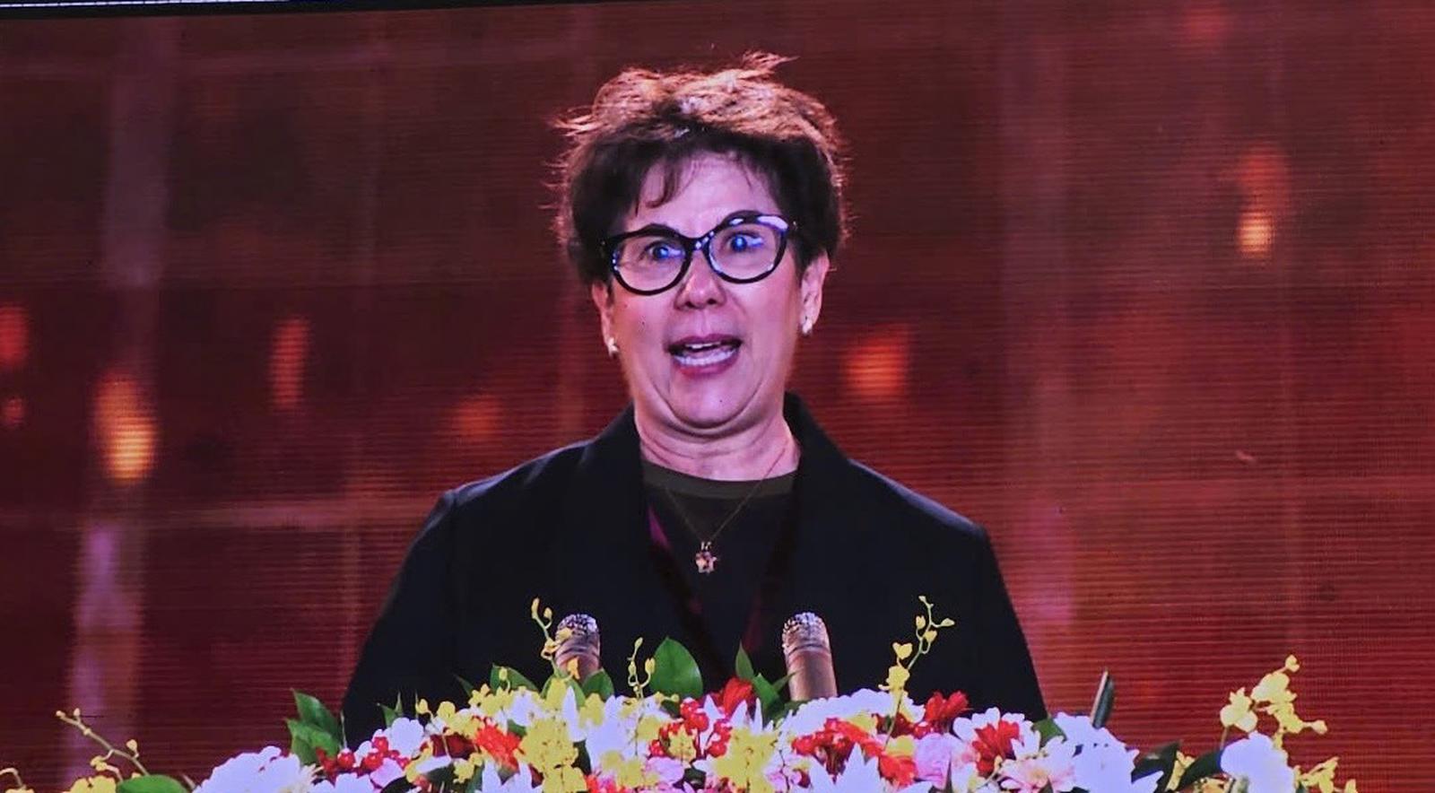 Bà Vanusia Noguiera - Tổng Giám đốc Tổ chức Cà phê thế giới phát biểu tại Lễ khai mạc Lễ hội Cà phê Buôn Ma Thuột lần thứ 9 năm 2025. Ảnh: NG