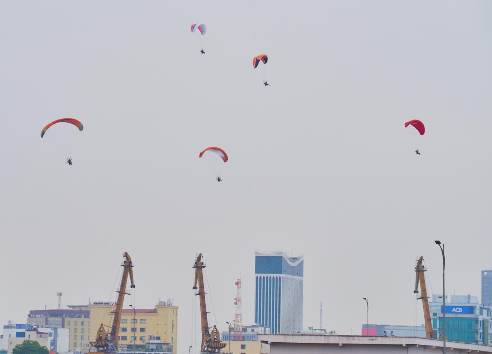 Quang cảnh biểu diễn dù lượn có động cơ. Ảnh: Kim Thành
