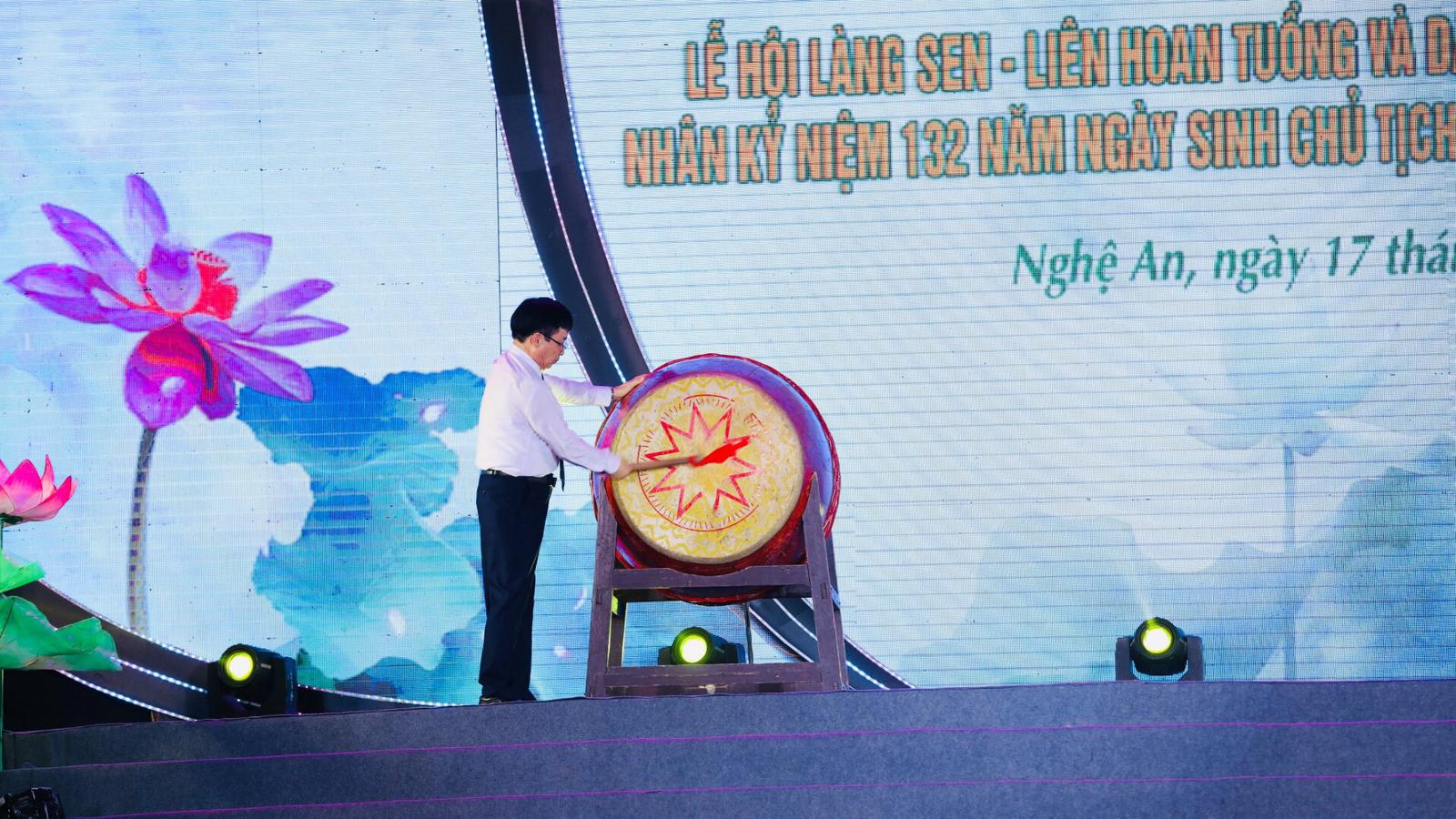 Ông Bùi Đình Long - Phó Chủ tịch UBND tỉnh Nghệ An đánh trống khai hội. Ảnh: XT